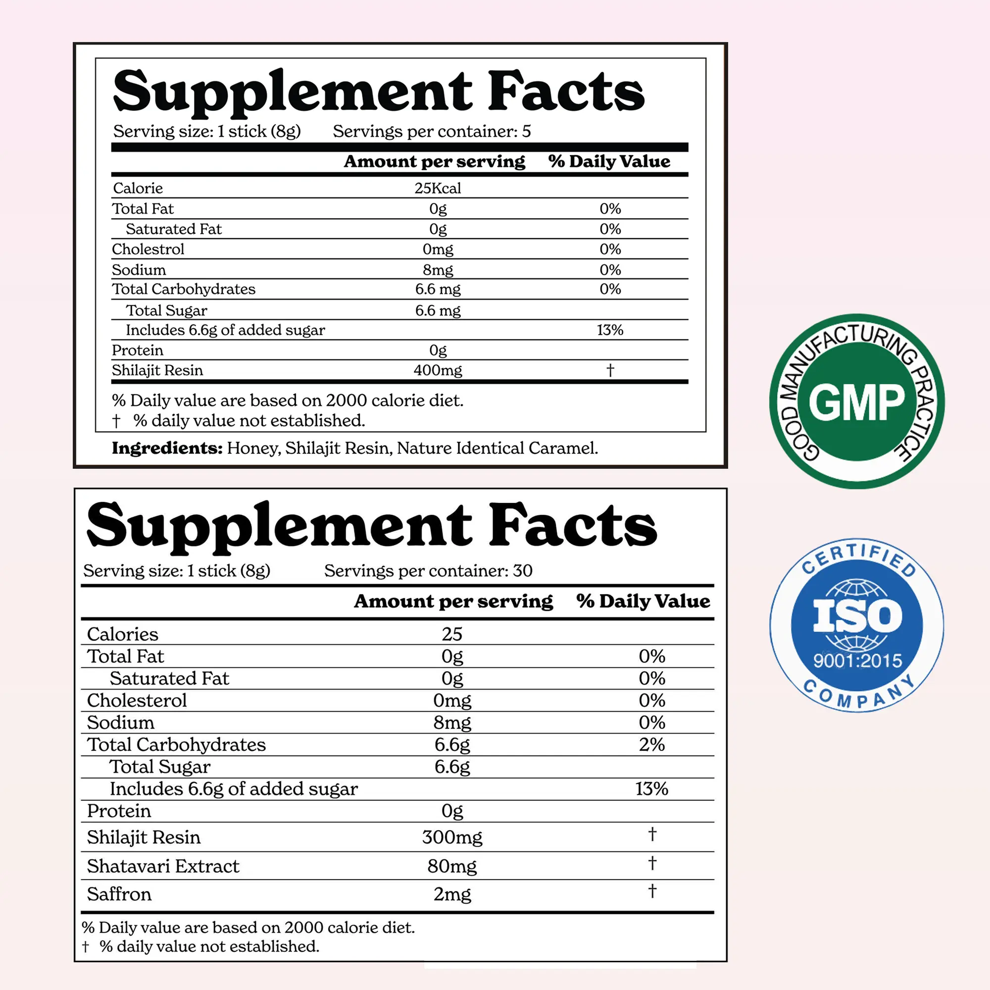 ·These honey sticks help you revive your bold and confident self by promoting energy, drive and vitality with Ayurveda’s time-tested blend of Shilajit, Shatavari and Saffron.