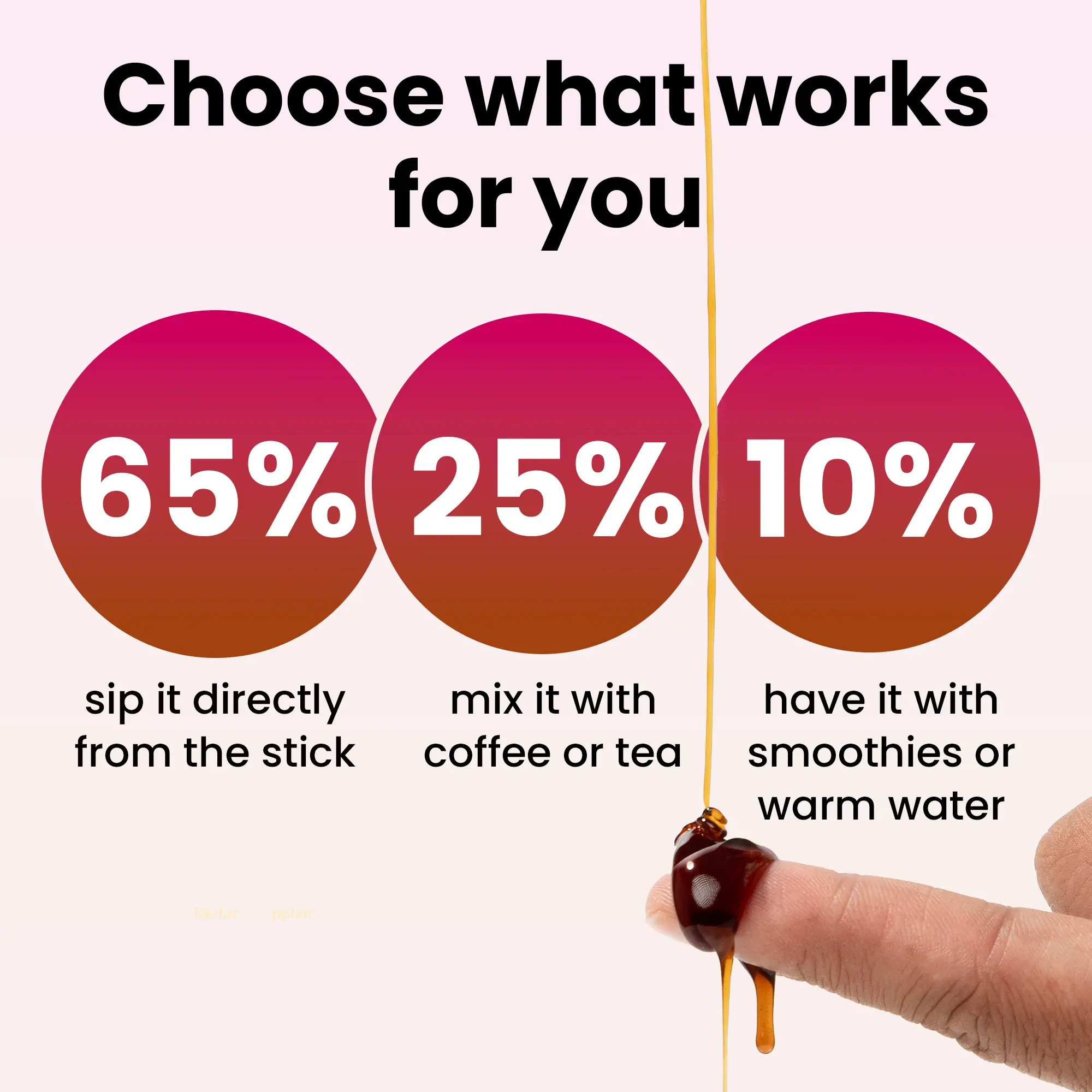 Simply tear open 1 stick and consume directly or mix it with a beverage of your choice. For best results, it is recommended to have it daily for 4-6 weeks.