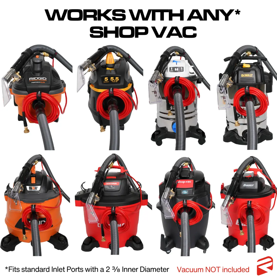 The Ripclean BetterExtractor ™ harnesses the power of your standard shop vacuum, instantly upgrading it to a professional-grade extractor. No need to invest in costly, space-consuming equipment - this innovative kit works with what you already have.