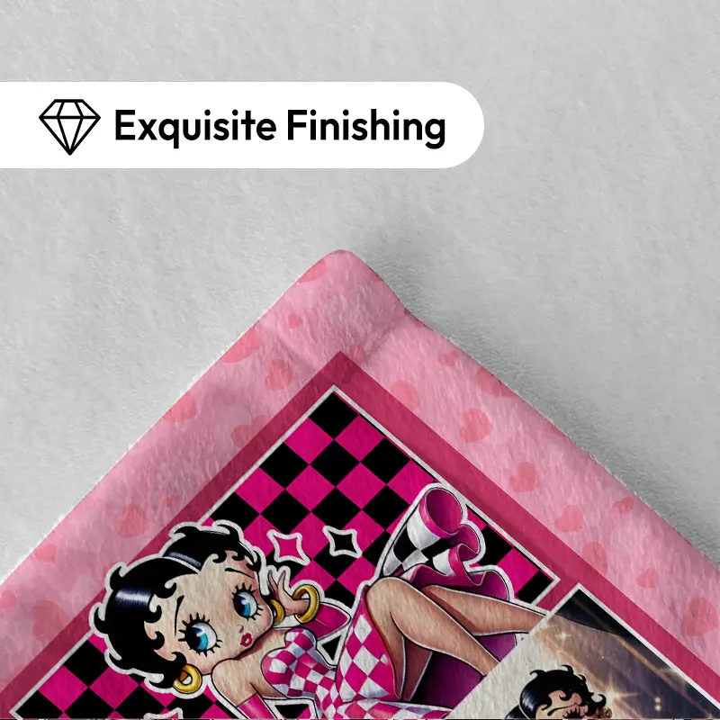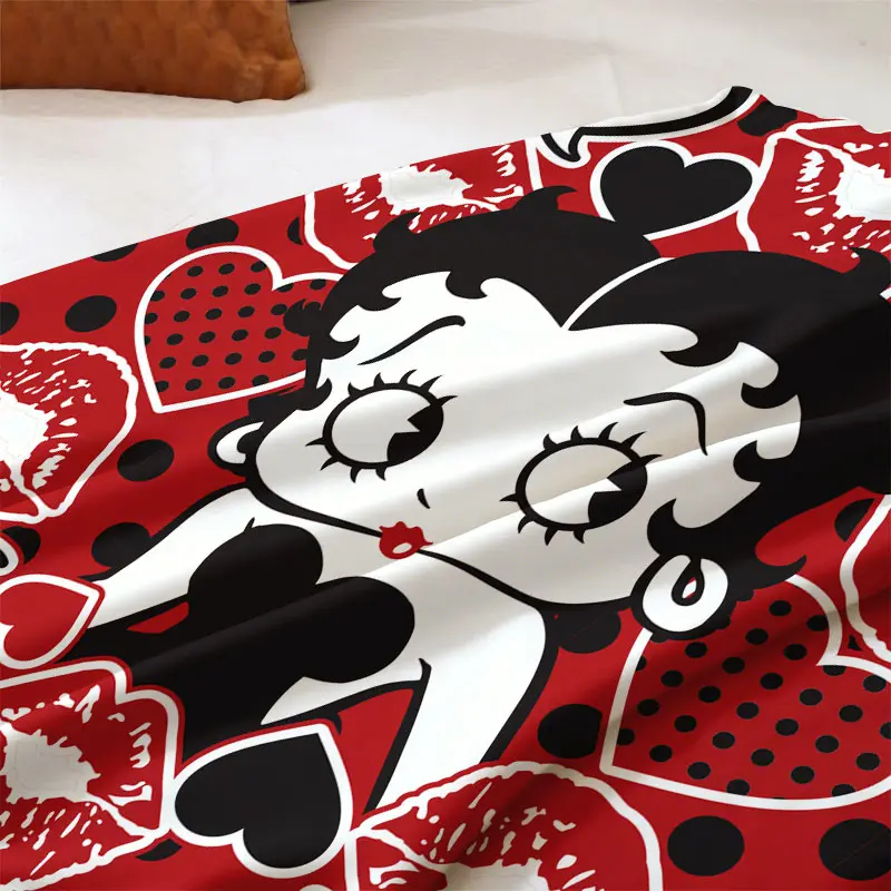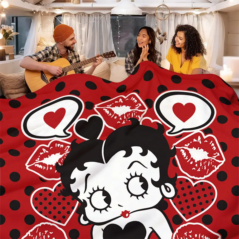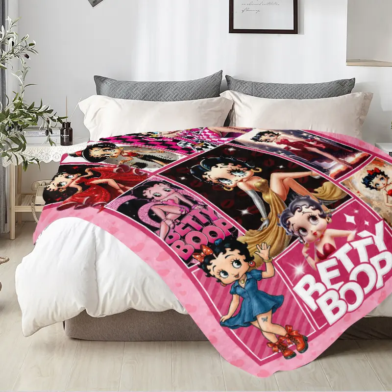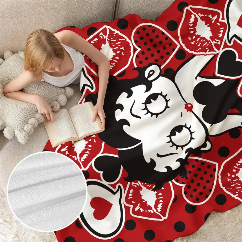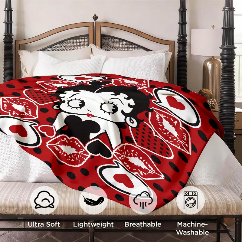 Elevate your comfort with the Betty Boop Cartoon Flannel Blankets! Made in the USA, these ultra-soft polyester blankets are perfect for bed, sofa, travel, or car use. Available in sizes 30x40, 40x50, 50x60, and 60x80 inches, they weigh 280g. Soft and lightweight, these blankets ensure year-round coziness. Machine washable for easy care.