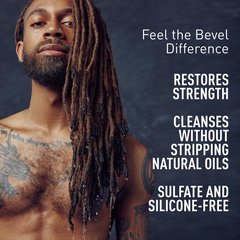 Bevel Moisturizing Sulfate-Free Shampoo. Gently cleanses textured hair without stripping its natural oils or patterns, leaving waves and curls fresh and hydrated.