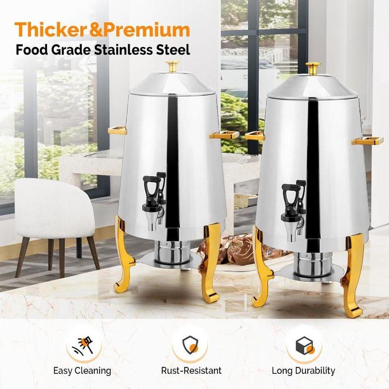 ·【Easy to Carry】With two carrying handles on the side of the coffer chafer, it is more convenient to carry even when it is full. And the tripod with thicked feet can hold the dispenser stably and firmly, preventing it from toppling and falling.