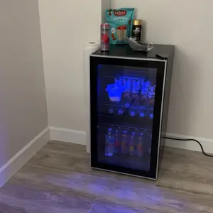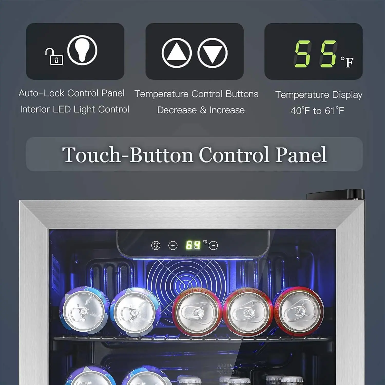GREAT CAPACITY-3.2 Cu. Ft. capacity holds up about 120 12-oz. cans in this beverage refrigerator. Mini size fit for everywhere, especially, better for your playroom, small kitchen and office.Large digital display for quick monitoring and setting of any temperature. Equipped with automatic lock function. Working temperature range is 40°F- 61°F.