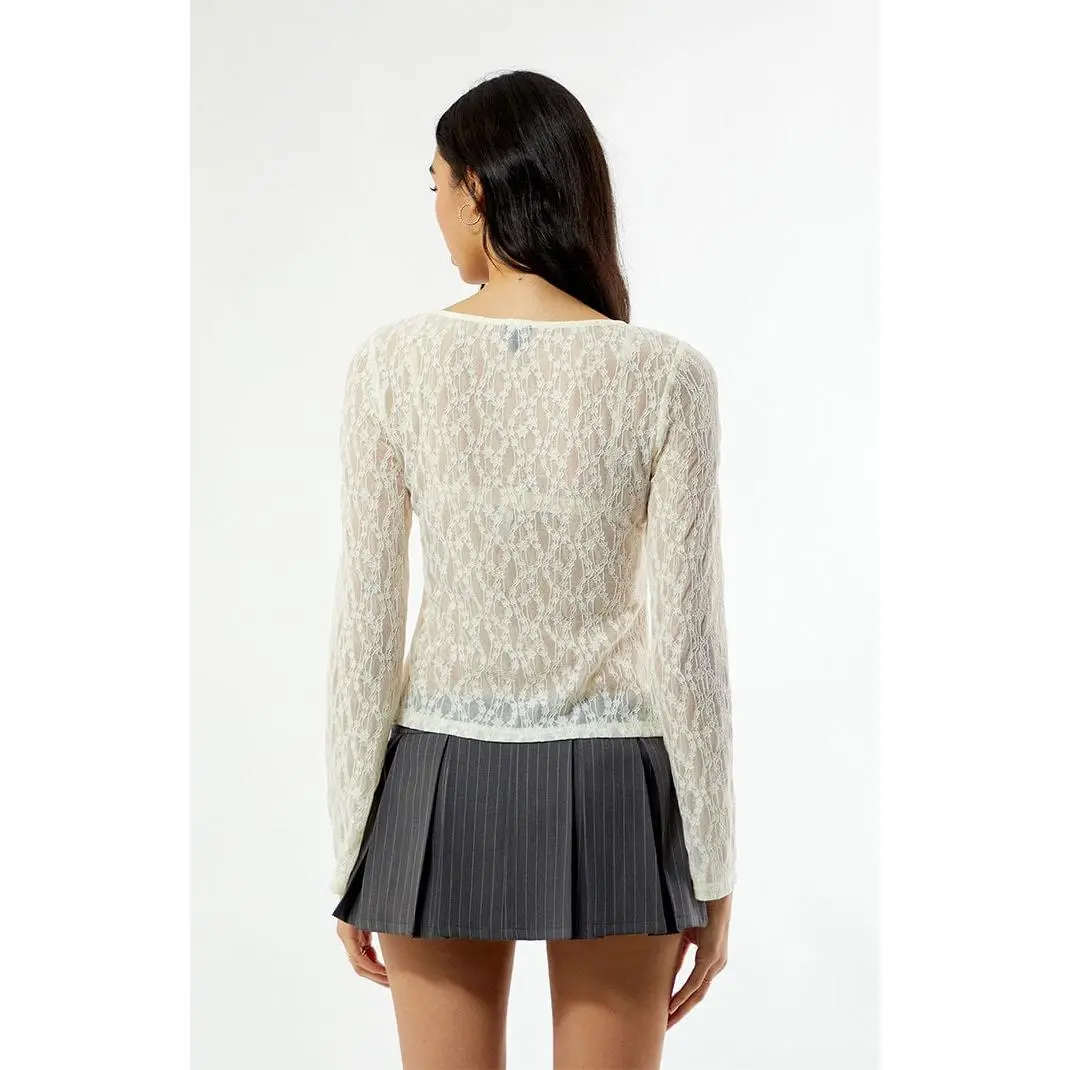 The Lace Tie Front Long Sleeve Top from Beverly and Beck radiates romantic elegance with its delicate lace detailing. Crafted from sheer lace with a round neckline, double tie front closure, and long bell sleeves, it’s a chic, feminine piece that elevates any outfit.