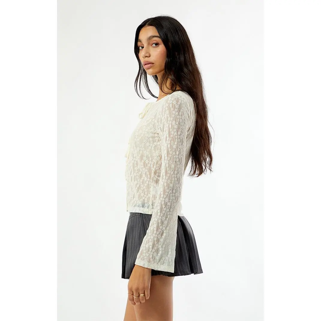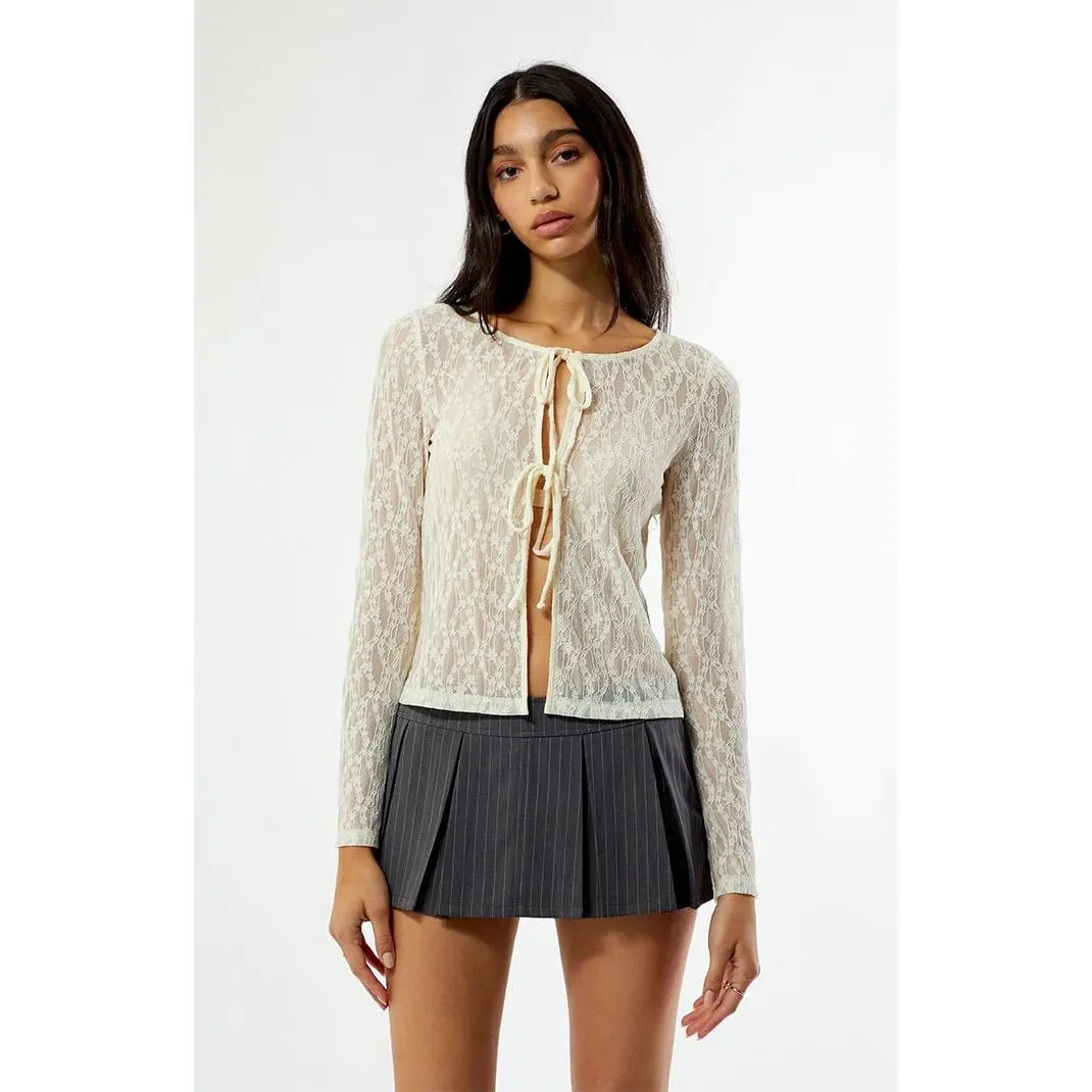Beverly and Beck Women's Lace Tie Front Long Sleeve Top