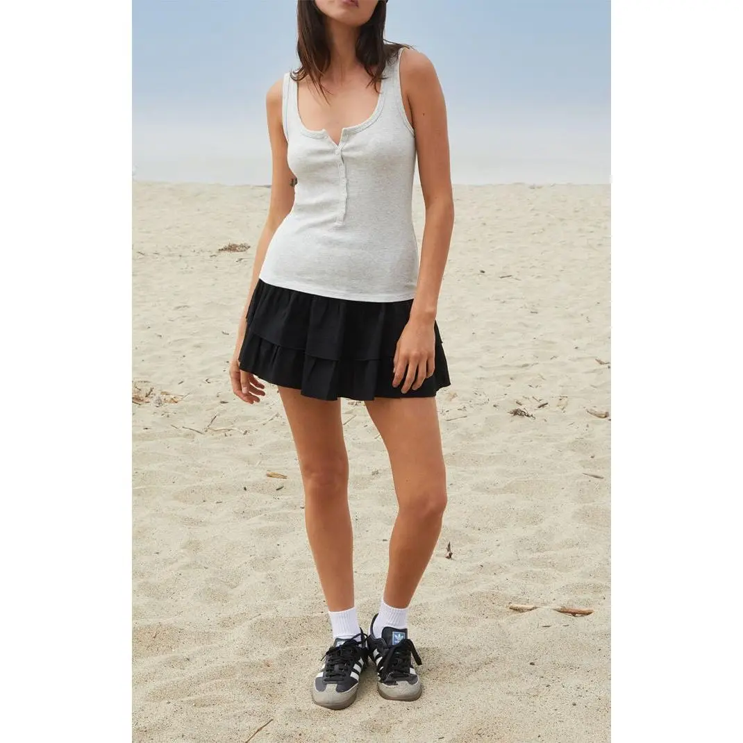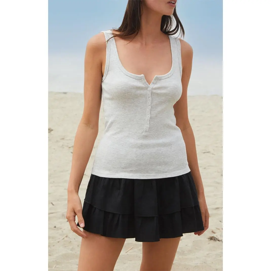 Keep it casual and cute with the Silver Beyonca Buttoned Tank Top from John Galt — a must-have for effortless everyday style. Featuring a scoop neckline, button front placket, and wide fixed straps, this slim-fit tank is perfect for layering or wearing on its own.