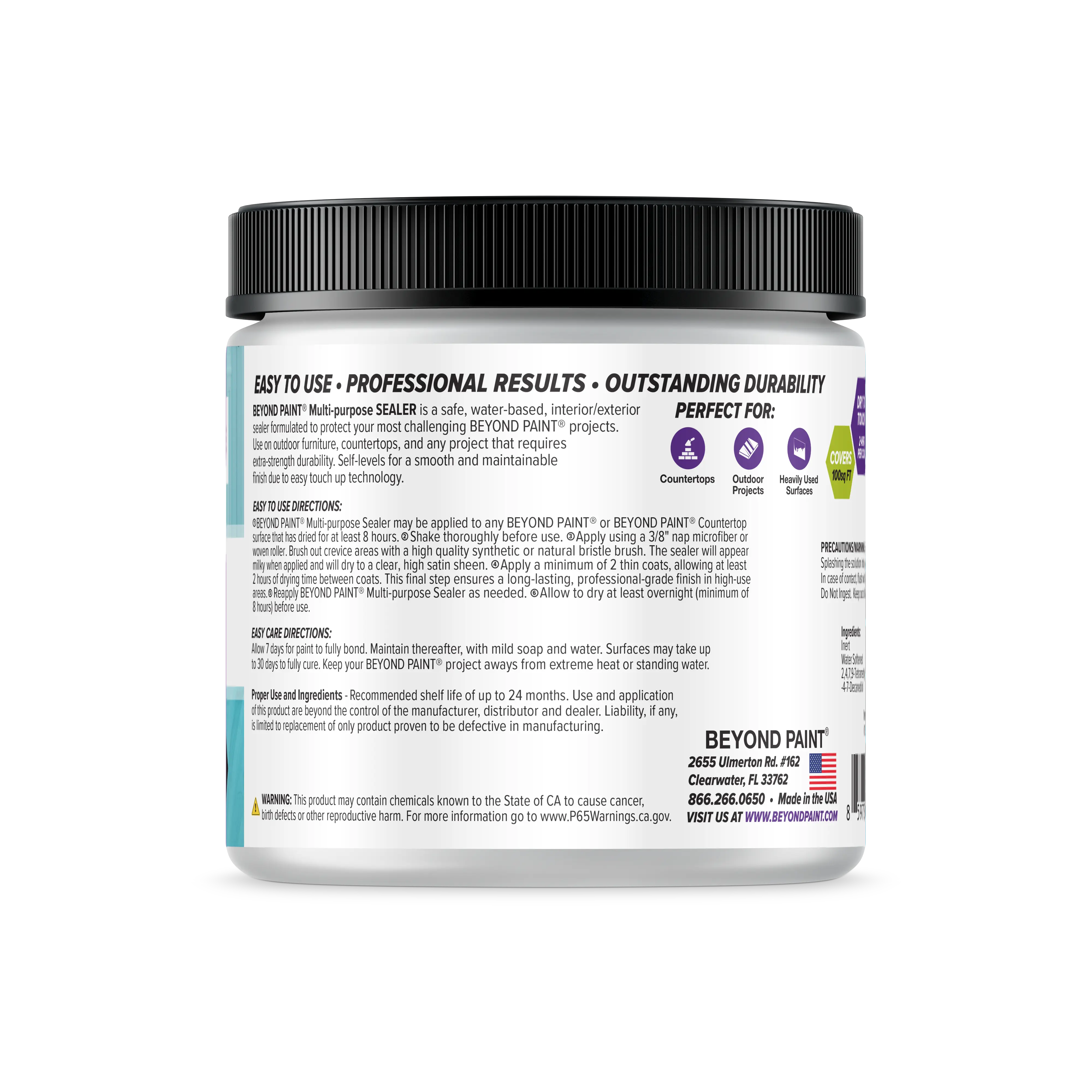 Beyond Paint® Multi-purpose Sealer is a safe, water-based, interior/exterior sealer formulated to protect your most challenging Beyond Paint® projects. Use on countertops, Indoor/outdoor furniture as the perfect topcoat for any project that requires extra-strength durability or weatherproofing. Engineered with easy touch up and self-leveling technology for a smooth, and lasting sheen finish.