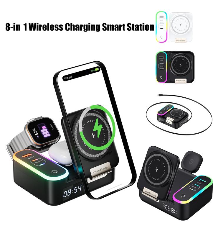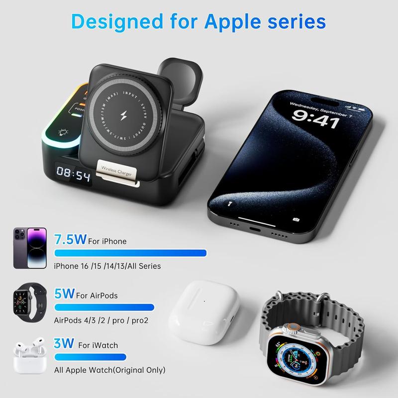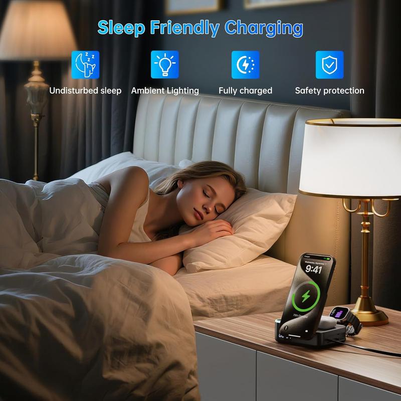 Charge all your devices effortlessly. This station works seamlessly with iPhones (16, 15, 14, 13, 12, and SE 2), Apple Watches (Series 10, Ultra, 9, 8, 7, 6, 5, 4, SE/SE 2), and AirPods (4, 3, Pro, 2). It ensures quick, reliable charging for all compatible devices without the hassle of multiple chargers.