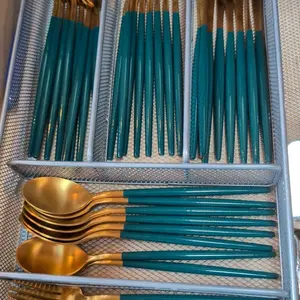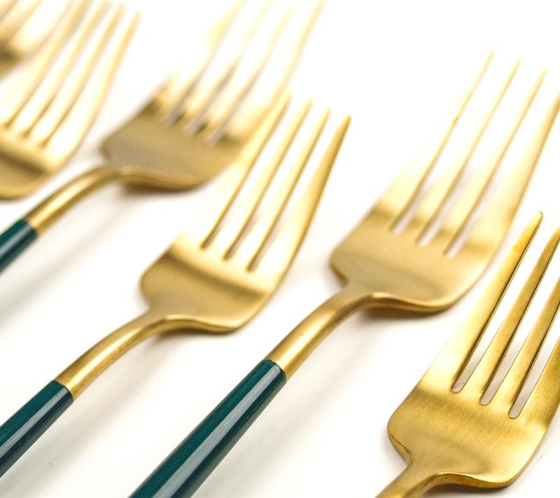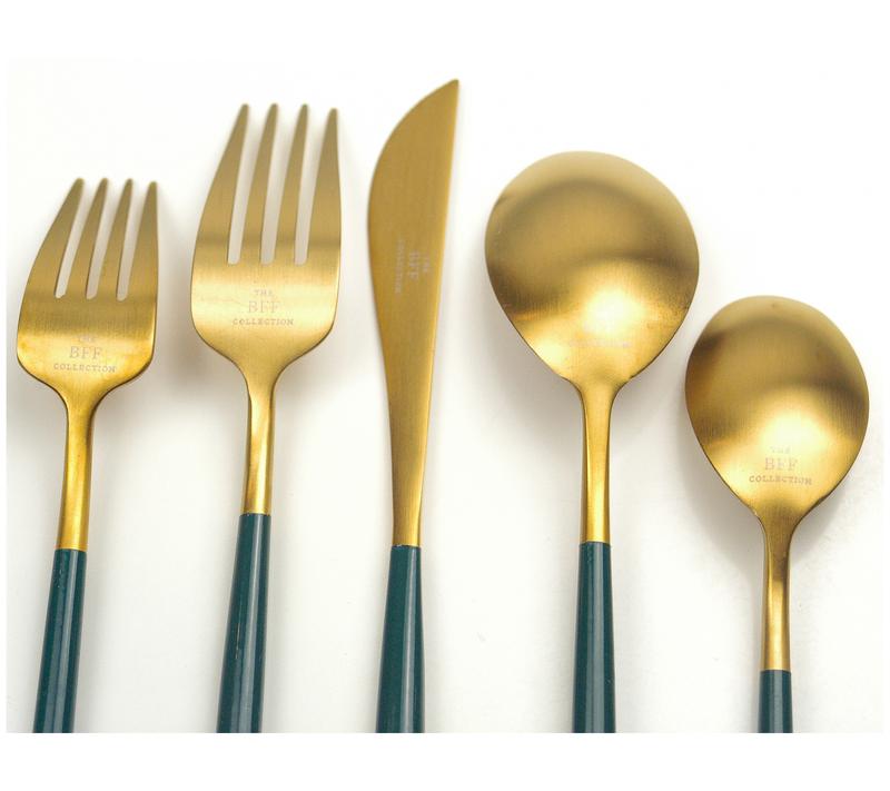 BFF gold and emerald silverware flatware set #silverware #flatware #goldflatware #qvc #kitchenmusthaves
