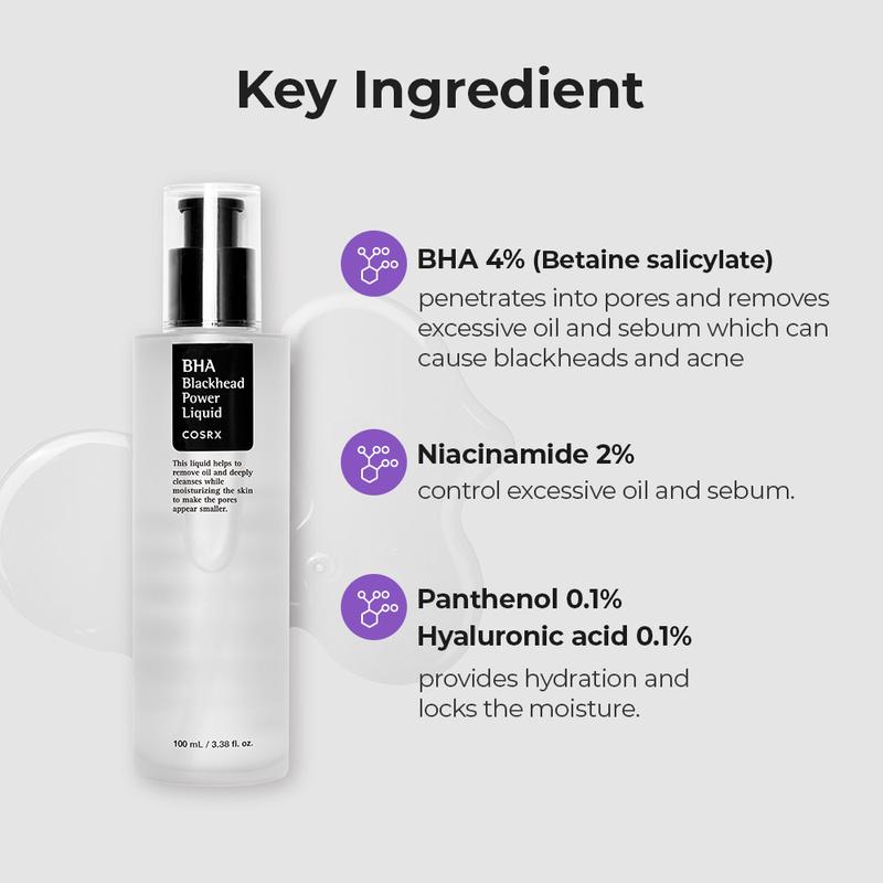 Ā·CONGESTED PORES, BE GONE: BHA penetrates deeply into the pores and helps clear clogged pores and gently exfoliates dead skin cells, giving the skin its natural glow. An easy and simple way to prevent acne and blackheads.