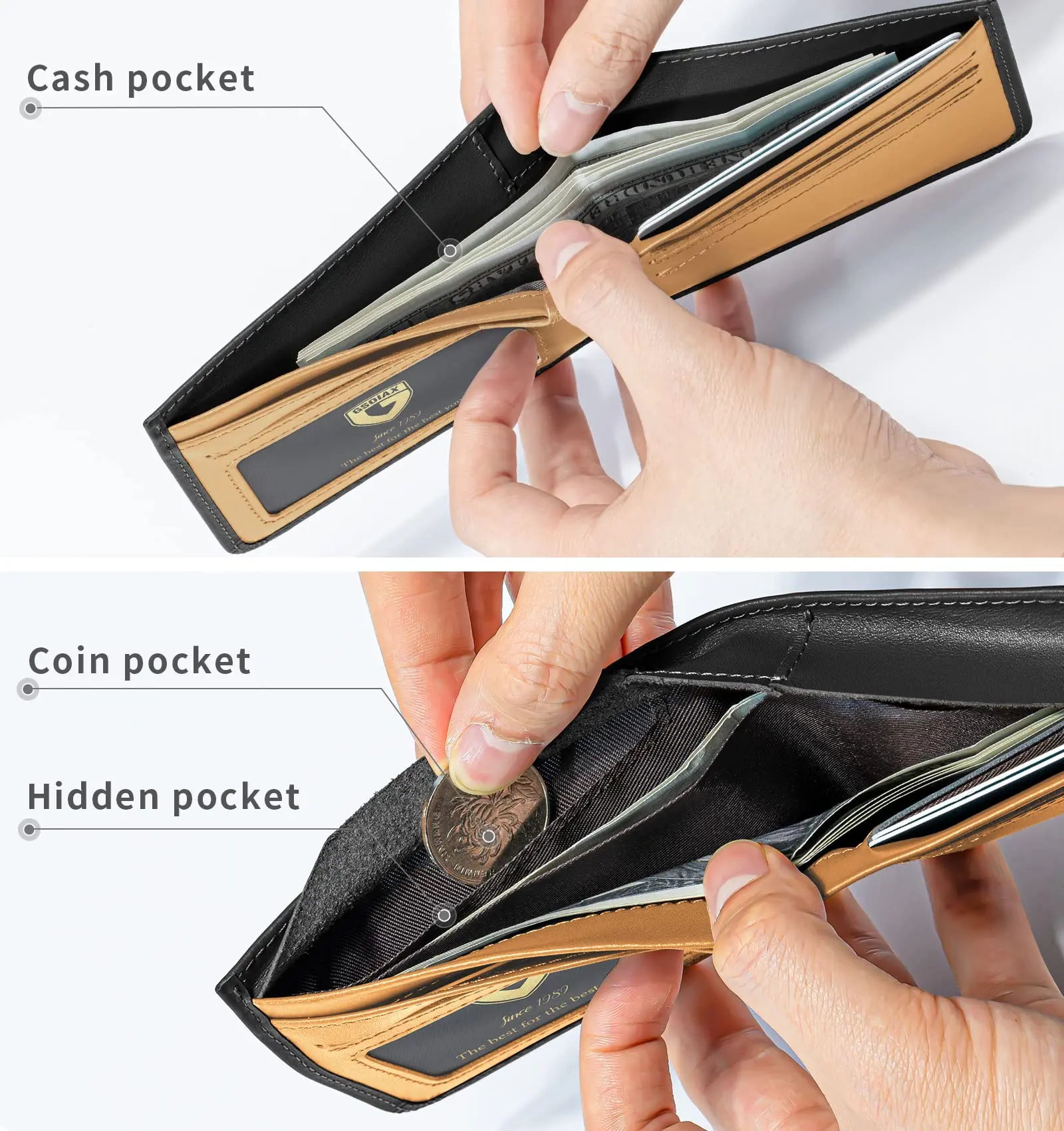 ·【Hidden pocket design】:Hidden bill section stores spare cash.