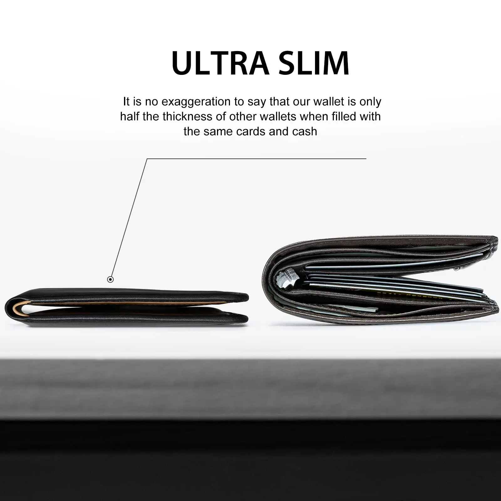 ·【Ultra-thin】:even if it is full of cards and cash, its thickness is only about 0.8 inch. It will fit in your pocket perfectly without bulging out.