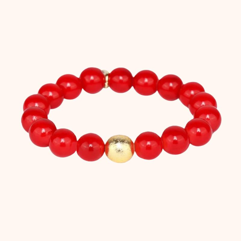 Our Bianca Red Berry beaded bracelet is a classic Mala bracelet popped with a fabulous brushed-gold bead.The Bianca is made of red agate stone and is the perfect beaded bracelet for women (or men) that can effortlessly be paired with AWB®. An Elastic component makes the Bianca an easy on and off accessory. One size fits most.