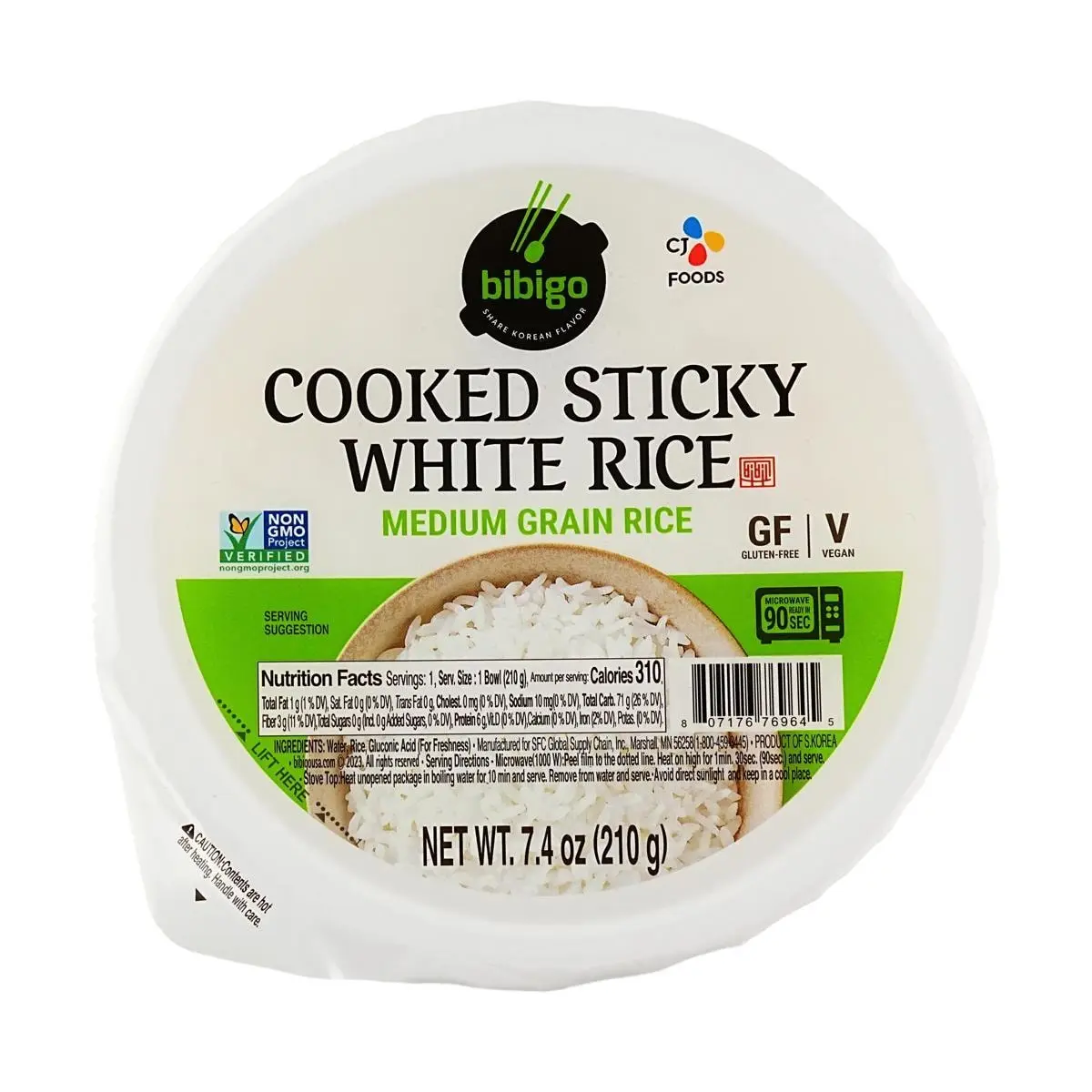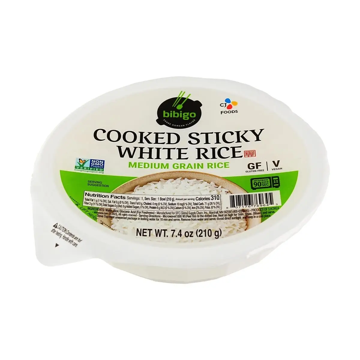 5. Bibigo Cooked White Rice Bowl - 210g Microwaveable Medium Grain Rice, Non-GMO, Gluten-Free, Ready-to-Eat Korean Meal