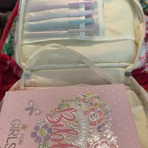 be careful! some of the markers and pens bleed thru the page. a couple of the markers were dried out. the bag is cute, im not 100% on the quality it does feel cheap. i wish it was a little bit wider to fit more inside. my bibles pretty big so it doesn’t leave too much space for a notebook and stuff.