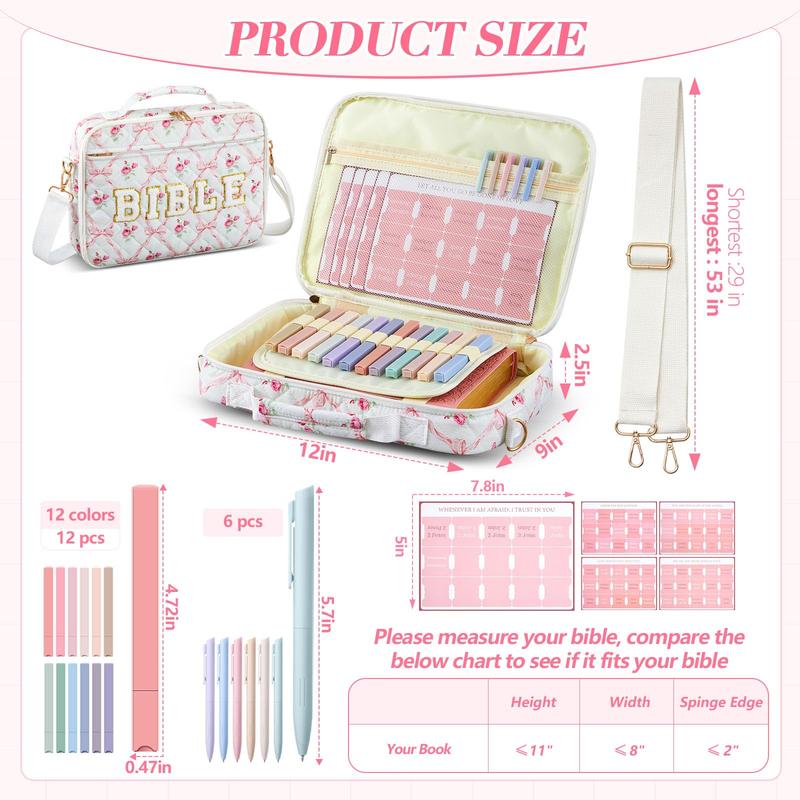 Capacity: Fit Bible pens, highlighters any kind of note you want includes a bookmark