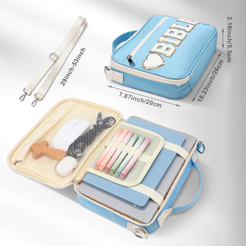 So cute!! Can't wait to organize my Bible case with my new Bible and highlighters. Love that the strap is long, my older bags only have the top handle. Definitely recommend purchasing this one.