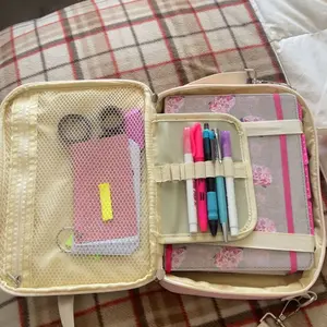 This bag is awesome, I love that I can carry it over my shoulder and it had so many pockets. I page for my highlighters and pens.