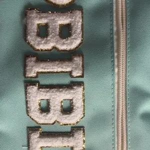 This is absolutely what I thought it would be. Perfect color, I love the glitter around the letters and that the letters are soft. All of the compartments are super. I love that is it light weight and comes with a shoulder strap! Win for me!