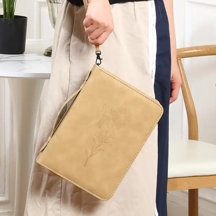 ·Material Composition: the bible cases are manufactured from quality, water resistant PU leather, ensuring protection to safeguard your bible from harm; The leather bible cover for women features a tastefully embossed floral design on rich brown leather, offering a stylish combination of elegance and sturdy; It also includes a detachable wristlet that can function as a keychain for keys; IDs or small wallets, adding other convenience and style