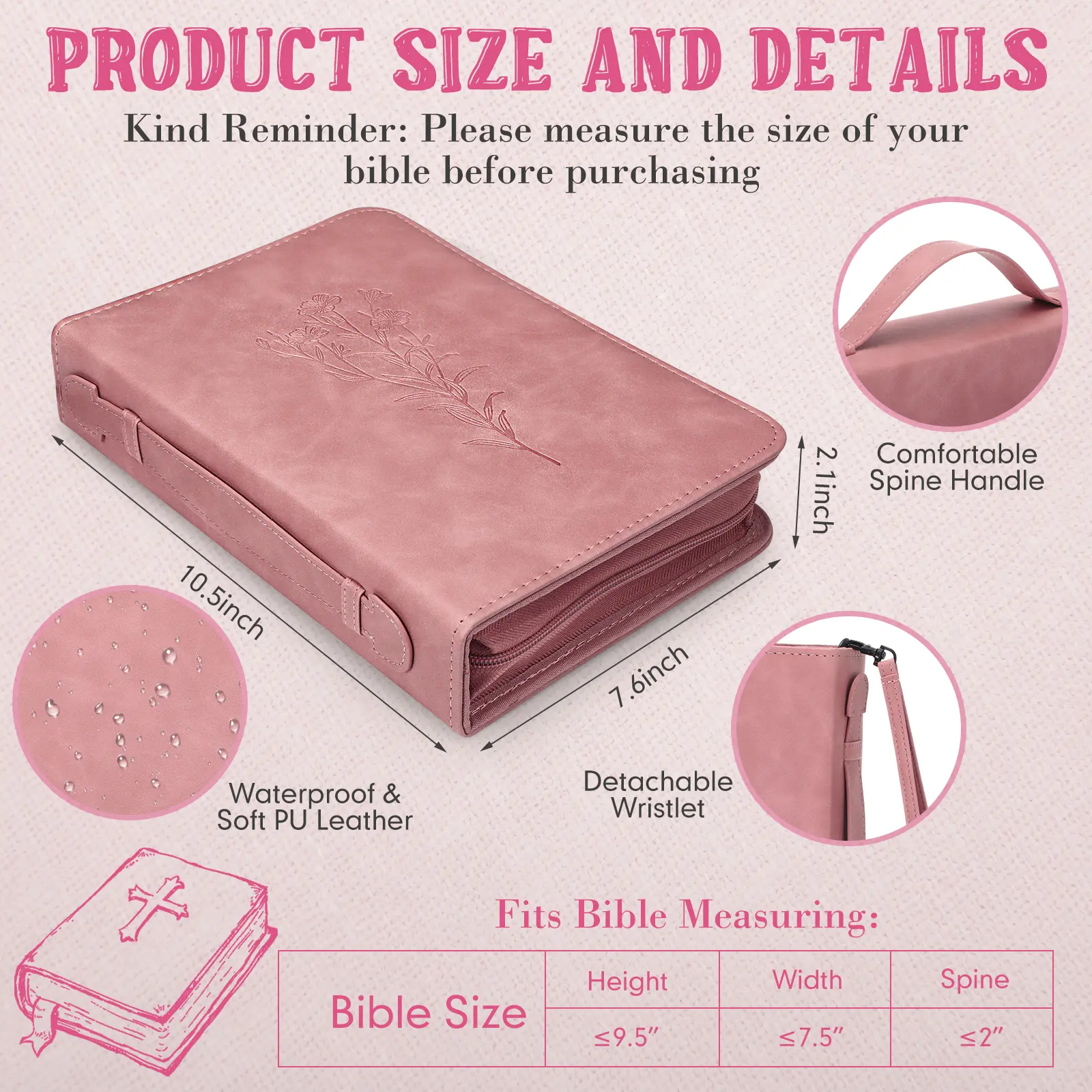 ·Minimalist Design: our bible cover bags are intricately designed to avoid your cherished bible and accessories from everyday wear and tear; The bible carrying case boasts a stunning 360 degree deposed floral design; This combination of striking design and strong symbolism makes it a treasured addition to your bible accessories
