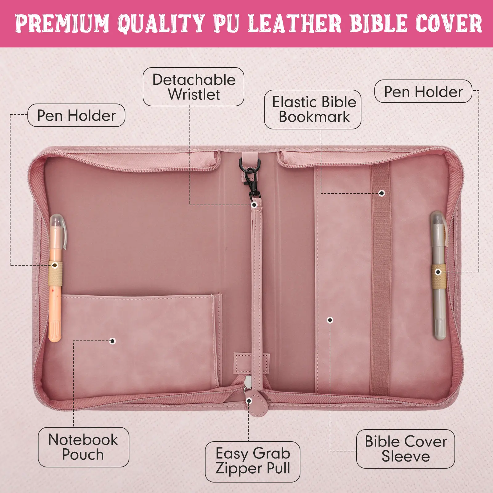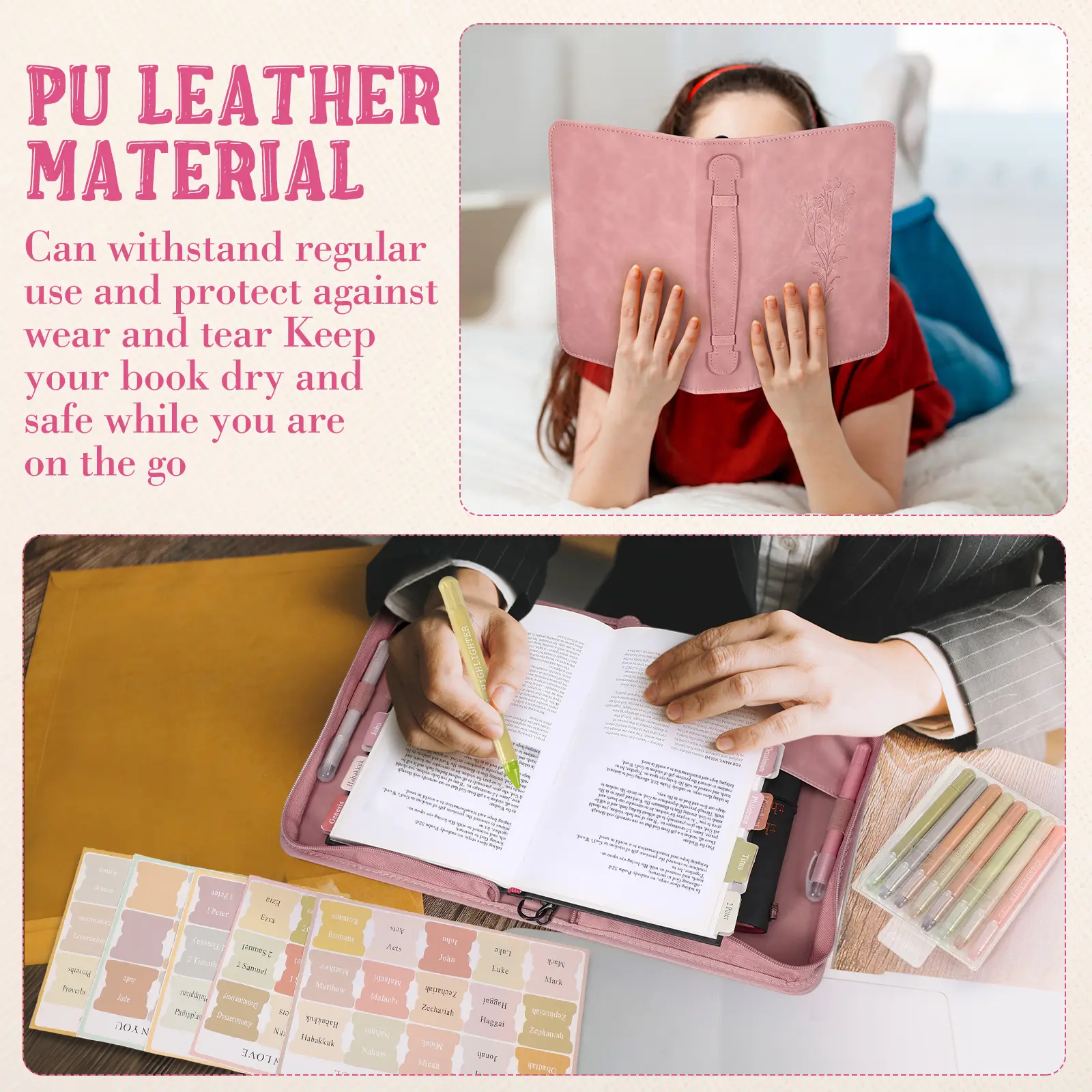 ·Bible Cases Set: this handy set comes with a beautifully designed bible cases for woman, 75 bible bookmarks and 8 bible highlighters; Blends a delicate and minimalist design with enough capacity to comfortably hold your beloved bible, stationery and small notebook; It offers fantastic and practical accessories to keep your bible well organized and protected