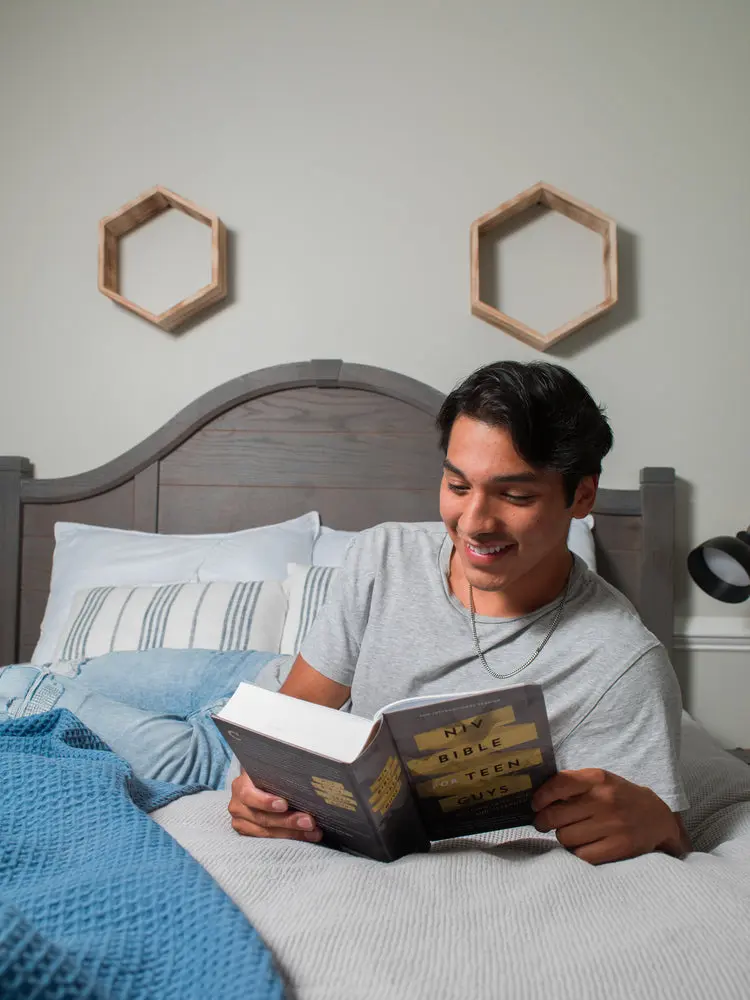 The NIV Bible for Teen Guys, designed specifically for guys ages 13 to 18, is for real teenage guys with real lives. Packed with daily readings, highlighted promises of God, challenging insights, smart advice, and open discussion about the realities of life, this Bible is designed to help teen guys grow in their faith. The NIV Bible for Teen Guys is as serious about his walk with God as you are, helping him discover God’s will for all areas of his life, including relating to family, dealing with friends, work, sports, girls, and so much more.