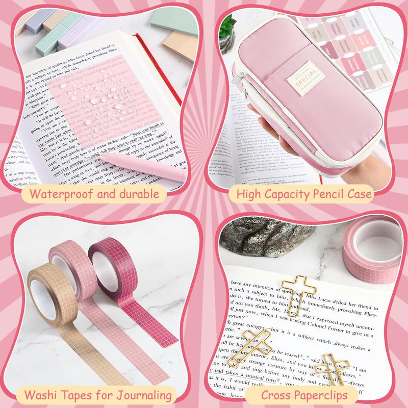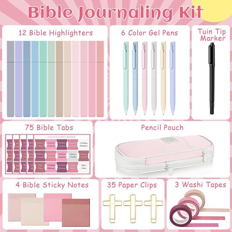 ·Bible Journaling Set: includes 1 double layers stationery pencil case case, 12 colorful no bleed highlighters and 6 smooth neutral pens, 75 bible labels, 35 cross paper clips, 3 aesthetics washi tapes, 4 sticky notes, and 1 quick dry marker