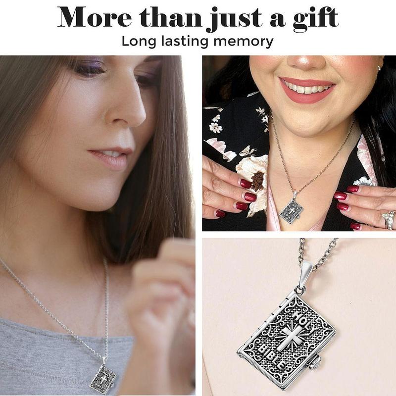 5. Cross Necklace for Women Openable Holy Bible Pendant 925 Sterling Silver Metal Pages Inside with 20 Inch Stainless Steel Chain Christian Jewelry Birthday Christmas Gifts for Women