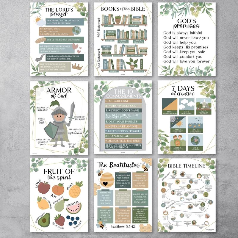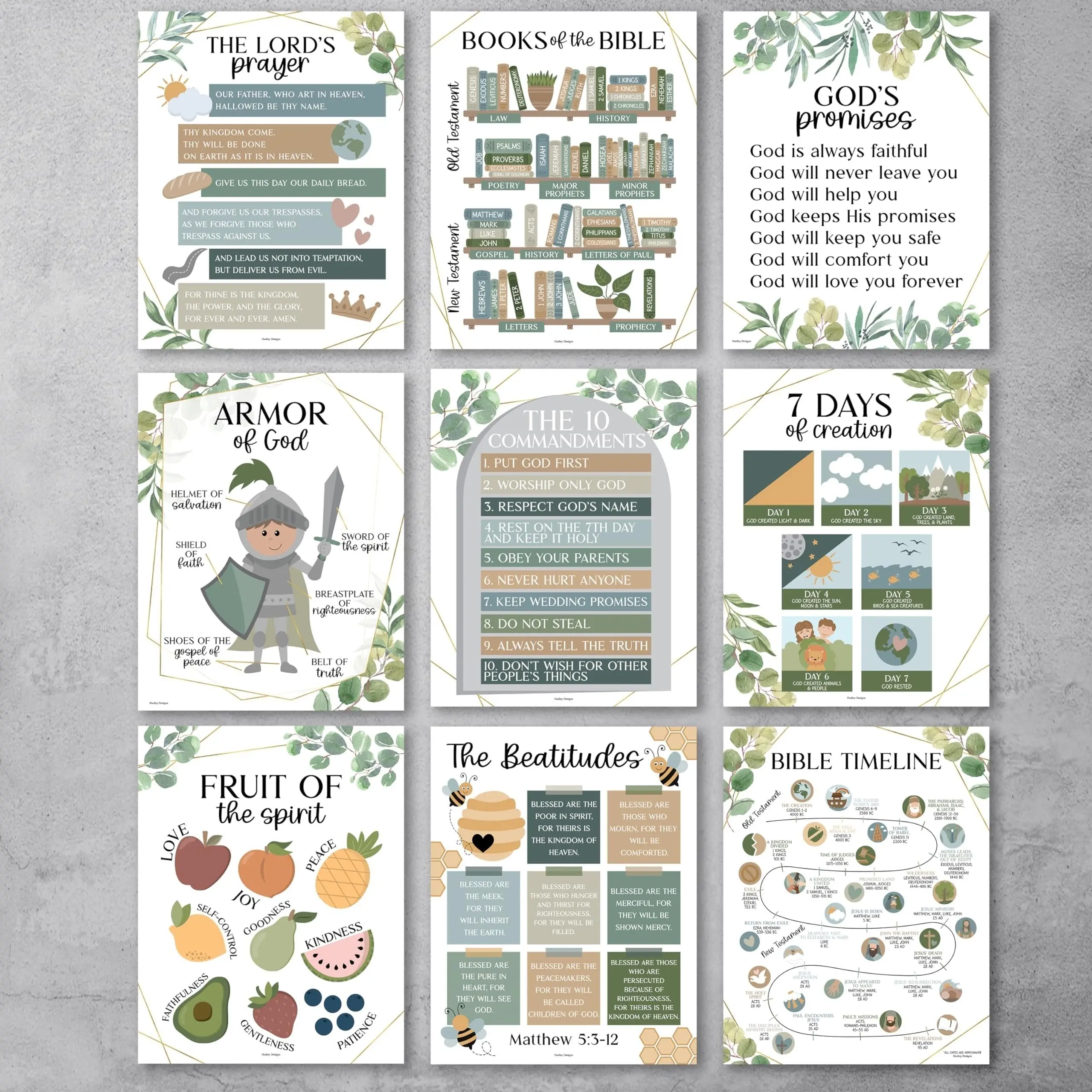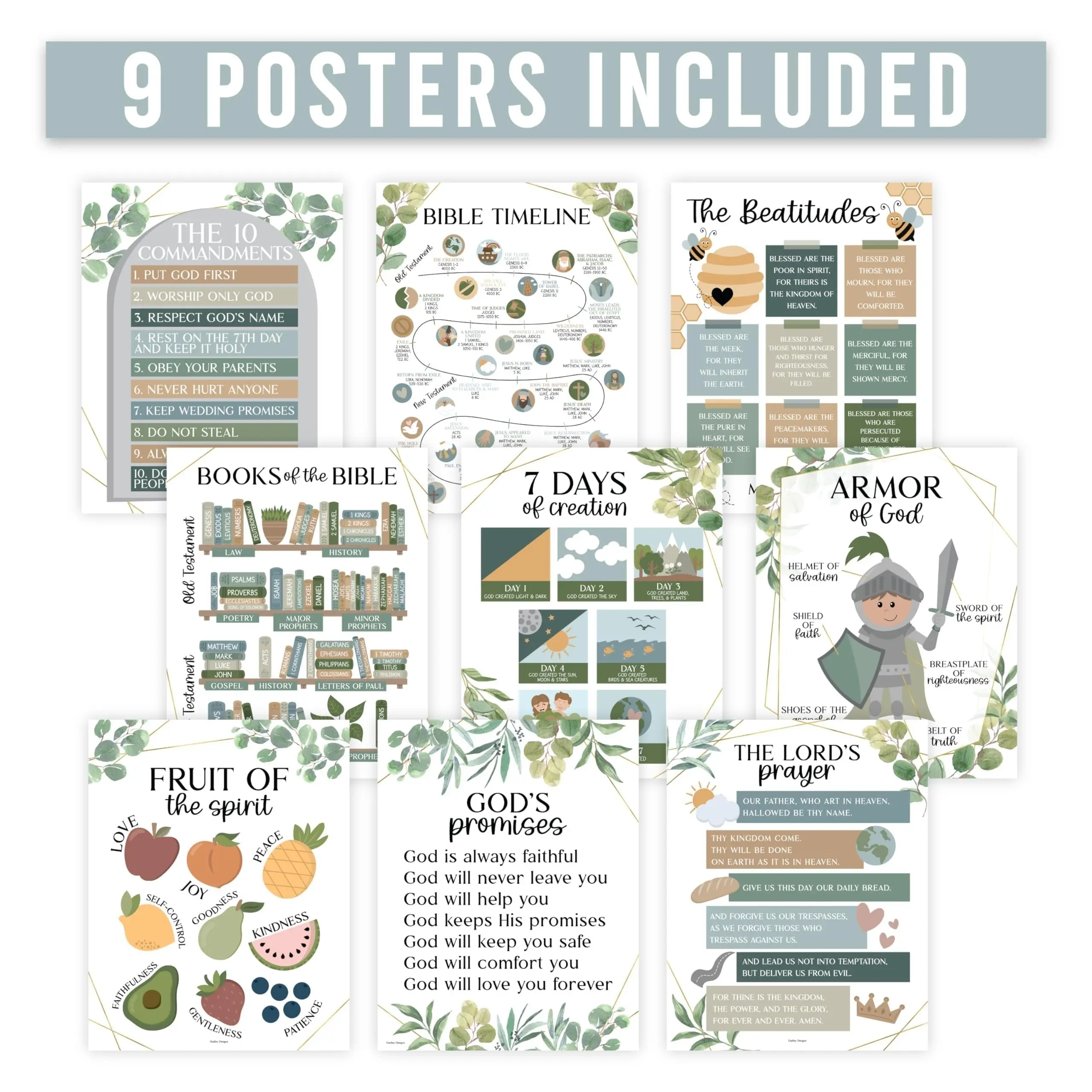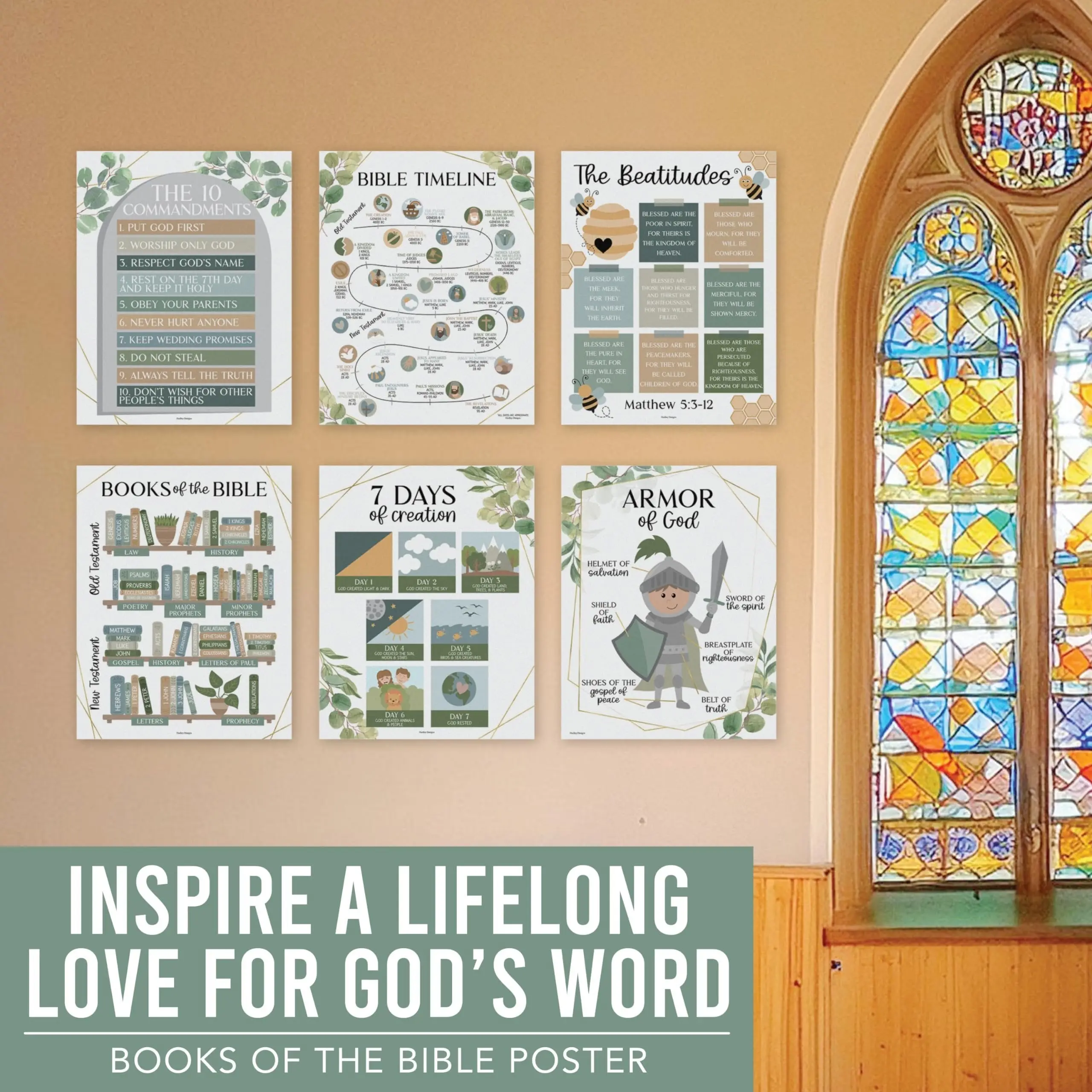 ·Inspire A Lifelong Love Of God's Word; You'll receive nine different 11x14 inch Bible posters, so you can easily ignite a passion for God's teachings, Use as religious posters for church or Sunday school posters for kids classroom