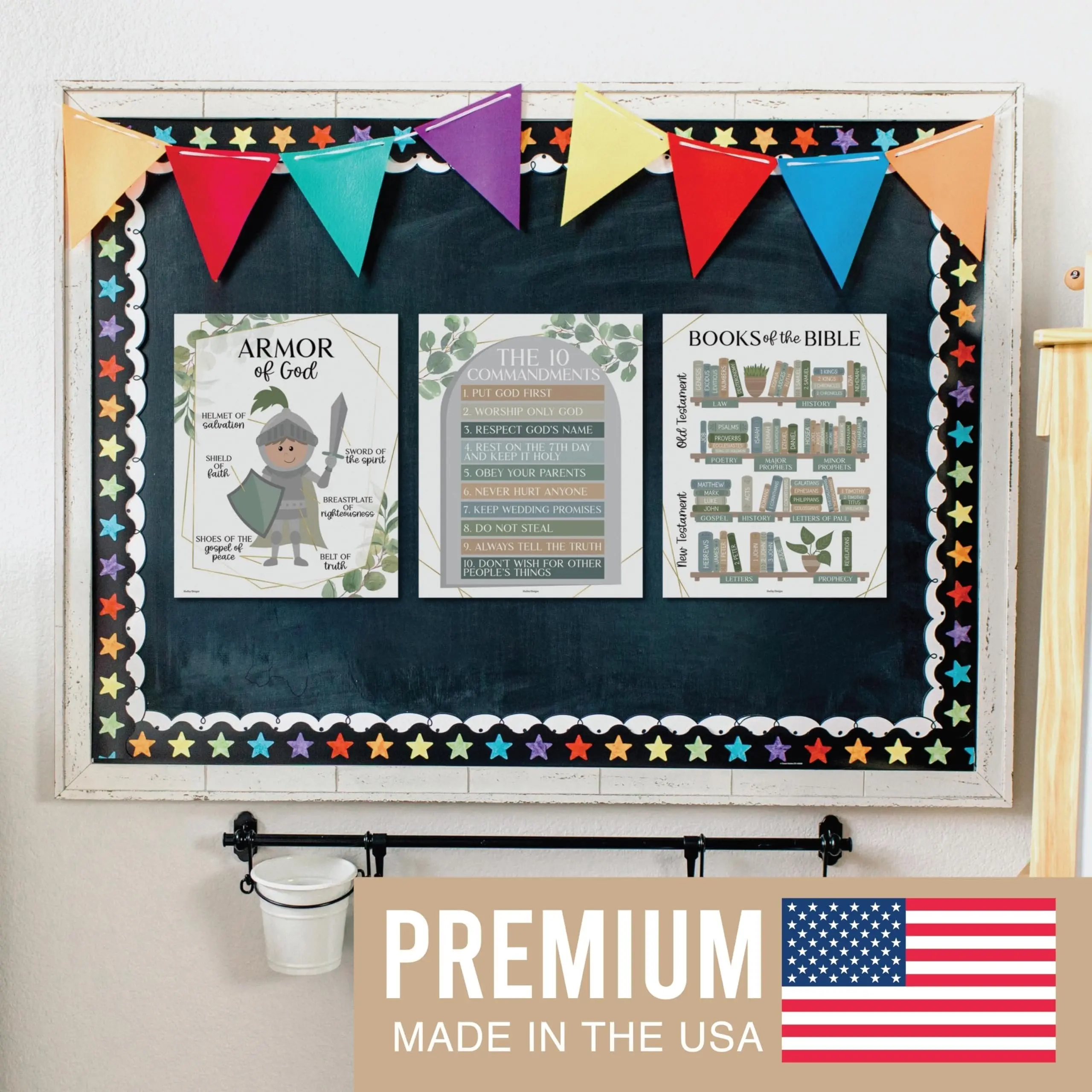 ·If You’re Looking To Make Learning The Bible Unforgettable; Then you need these Christian posters for kids because while other Christian posters for walls are made overseas, our Bible posters for classrooms are proudly USA made