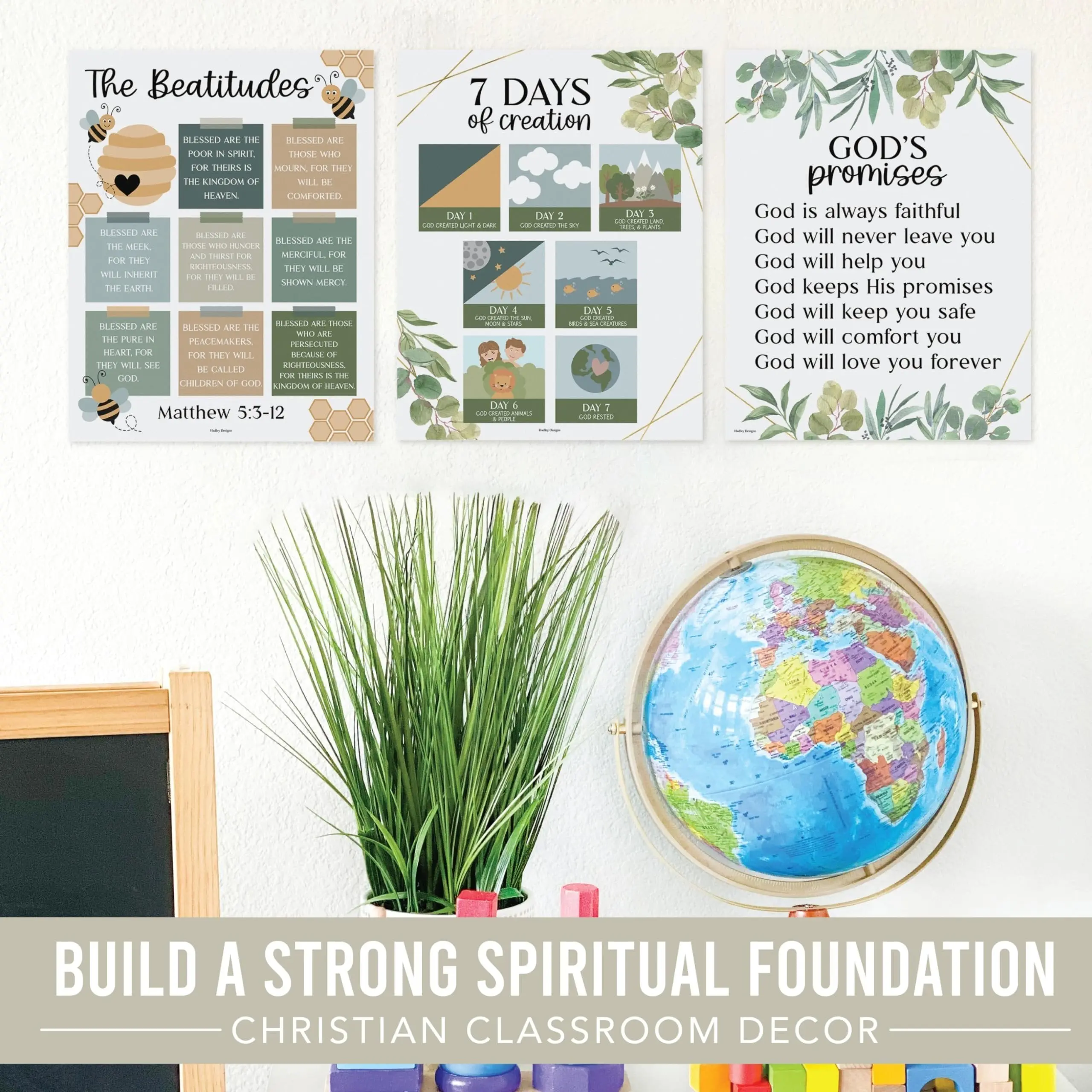 Build a strong spiritual foundation by using these as Sunday school posters for classroom, bible posters for classroom supplies for teachers elementary, bible posters for kids classroom decorations middle school, bible posters for Sunday school for classroom decor theme sets, catholic posters for classroom essentials elementary, catholic posters for kids learning posters, modern