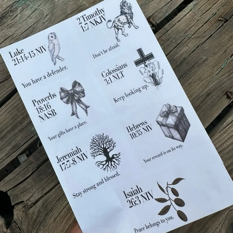 Study the Bible with these vinyl stickers! They contain scriptures for you to look up, write down and meditate on.
