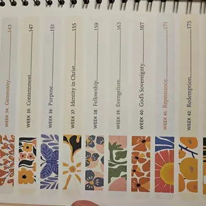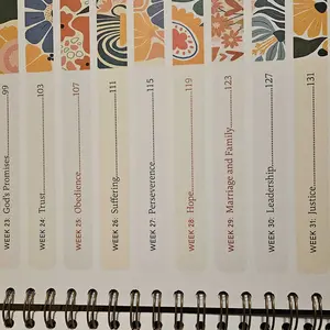 The softcover spiral binding lies flat, so you can jot down notes without wrestling the spine. High-quality, bleed-resistant paper means your pens, markers, or highlighters wonāt spoil your pages. With extra-wide margins and an easy-to-read 10pt font, youāll have plenty of room and comfort to reflect, journal, and engage deeply with each weekās theme.
