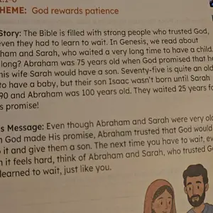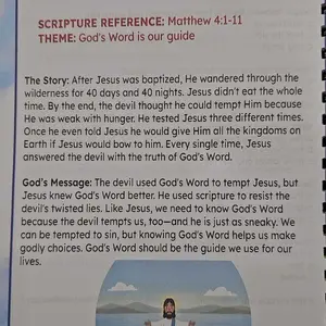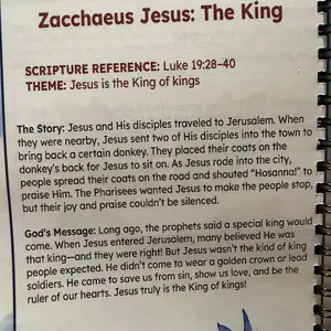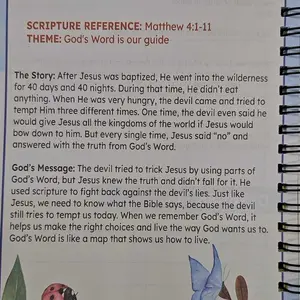 This book is nice, but a little smaller than I expected. This is definitely a beginner Bible lesson book. The stories are nice and short enough to teach the younger children. I also found what looks like a "Typo" in the title of 6 lesson. I can make it work but I expected more.