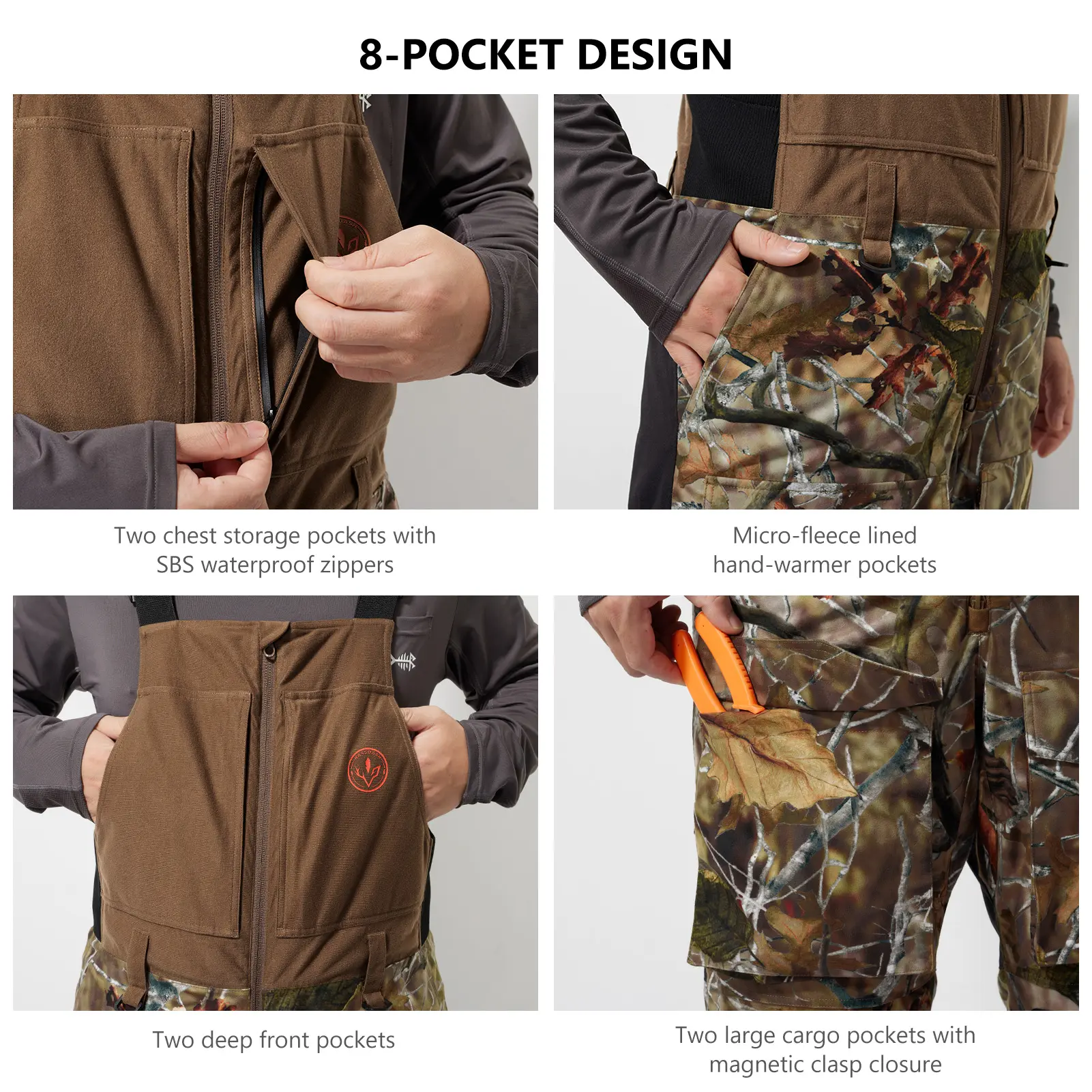 Eight-pocket storage - Two chest storage pockets with SBS waterproof zippers, two micro-fleece lined hand-warmer pockets, two deep front pockets, and two large cargo pockets with magnetic clasp closure