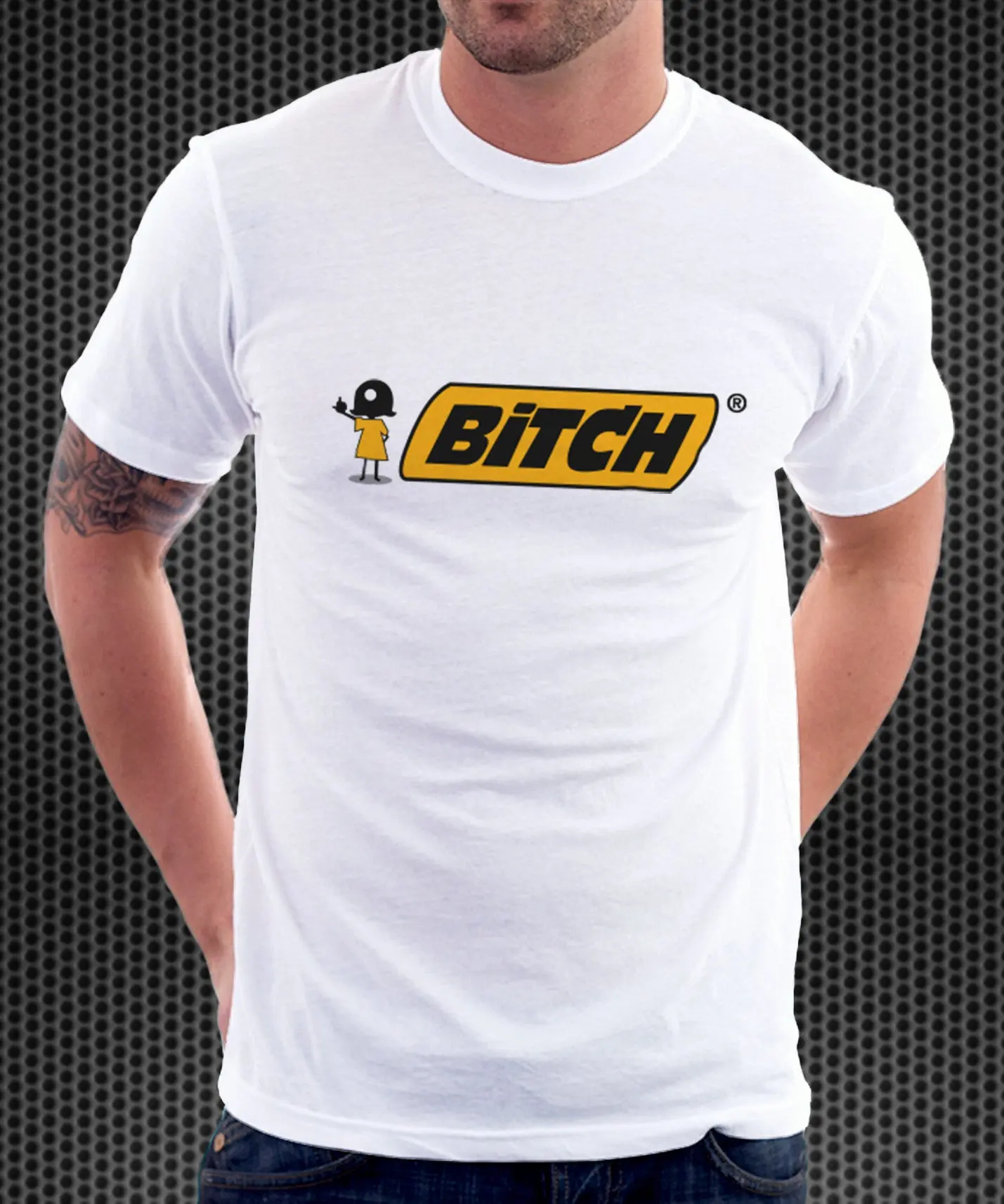 BiC Ballpoint Pen Logo Parody Spoof Tshirt: BiTCH Logo White Tshirt Made from 100% cotton!
