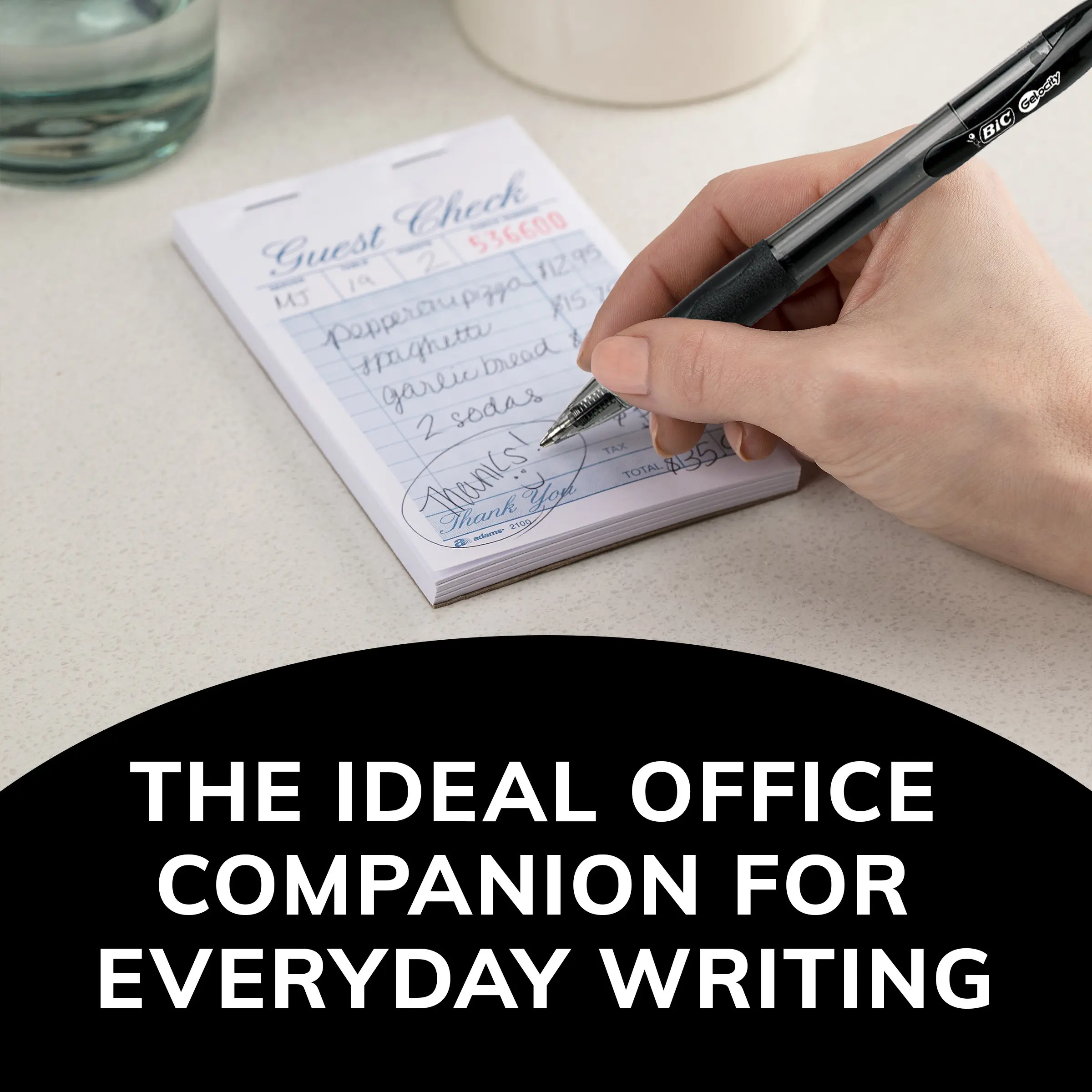Experience smooth writing with BIC Gelocity Original Black Gel Pens. This 0.7mm medium point pen is a long-lasting gel pen that writes 20% longer* making it perfect for everyday writing at work, school or home. These pens also have smooth ink that writes fluidly and effortlessly. Creating clear, dark lines, they’re the ideal gel pens for writing lists, taking notes, journaling and more. The round barrel features a grip that offers a secure yet comfortable hold, making it ideal for prolonged writing sessions. Plus, the plastic clip easily attaches to pockets, notebooks and more for quick access on the go. Designed for convenience, these retractable pens let you start writing with just one click, and a translucent barrel lets you easily keep track of the remaining ink supply. Gel ink pens are smooth writing pens that are easier to use for long periods of time than a standard ballpoint. With this 12-count pack of gel pens, you can write clearly and comfortably for hours. Looking for a reliable gel pens bulk pack for school or office supplies? Choose BIC Gelocity Original Black Ink Gel Pens for a high-quality, safe and affordable product you can trust. *vs BIC Gelocity Quick Dry