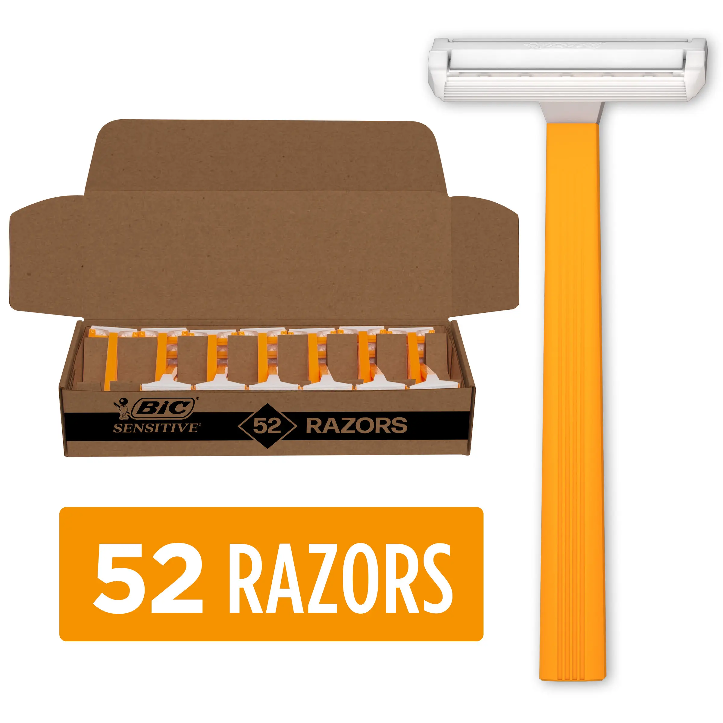 Enjoy a shave designed for a sensitive, soothing and comfortable experience with BIC Sensitive Men's Disposable Shaving Razors. Each BIC razor in this 52-count pack of razors for sensitive skin delivers all the features you need for a great shave without breaking the bank. A single-blade design rinses easily so you can focus on sculpting the perfect look, making these facial razors the perfect men's shavers you can always depend on. The BIC Sensitive men's razors feature a lightweight, easy-to-hold handle for a comfortable shave. Plus, an easy-to-use snap-on blade cover keeps you protected while storing this long-lasting razor. When you’ve used all of the razors, simply purchase a new pack. Looking for affordable, dependable single-blade sensitive skin razors that deliver a closer shave for smoother feeling skin? Choose BIC Sensitive Disposable Razors for Men.