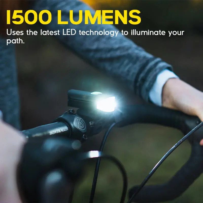 Hokolite 1500 Lumens Rechargeable Bicycle Headlight with Low Battery Indicator, Daylight-Visible Flash, Compact Design & 4 Inch for Outdoor CyclingHokolite 1500 Lumens Rechargeable Bicycle Headlight with Low Battery Indicator, Daylight-Visible Flash, Compact Design & 4 Inch for Outdoor Cycling