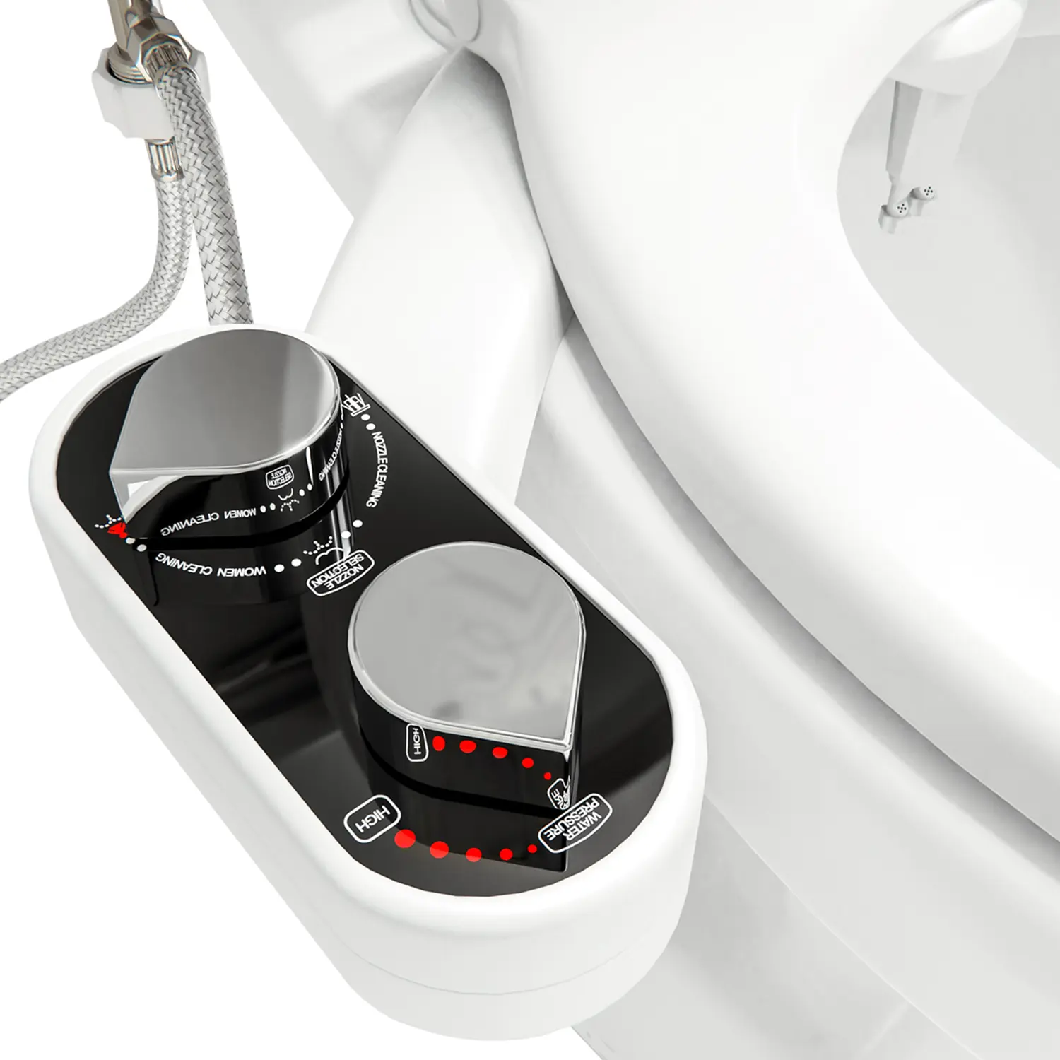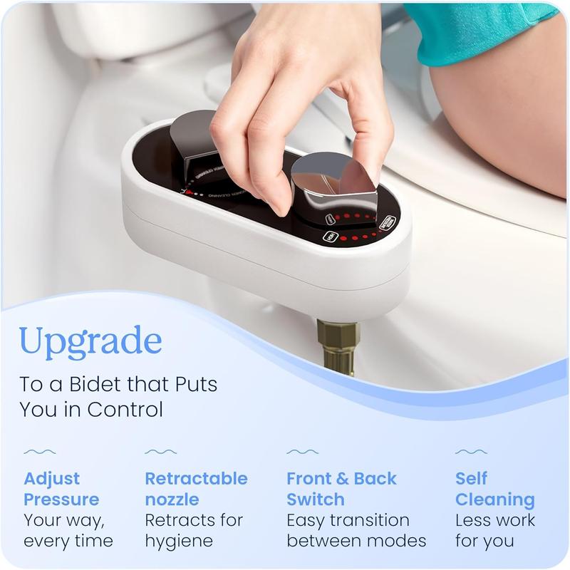 The Buttler bidet wash by Clear Rear is for those who want to take their bathroom experience to a whole new level. This easy to install bidet attachment for toilet has 2 retractable nozzles with front and back cleansing capabilities. Its adjustable water pressure means you can choose from soft, medium, or hard settings depending on your desired comfort level. Set to self cleansing mode to have each of the nozzles thoroughly cleaned and then retract back into the protective housing when non electric bidet isn't in use.