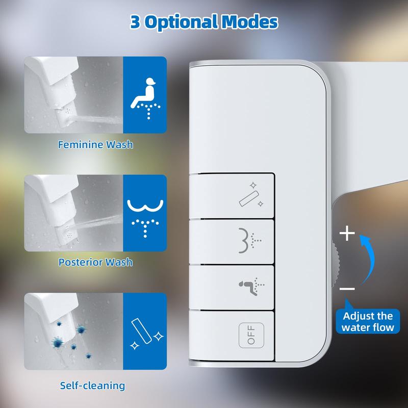 ·Dual Self-Cleaning Nozzle: For improved cleaning and sanitization, the bidet is equipped with dual nozzles to help rear and front cleaning which is quite beneficial for feminine hygiene. The nozzle automatically retracts behind the guard gate after each wash to ensure it is protected until your next use.