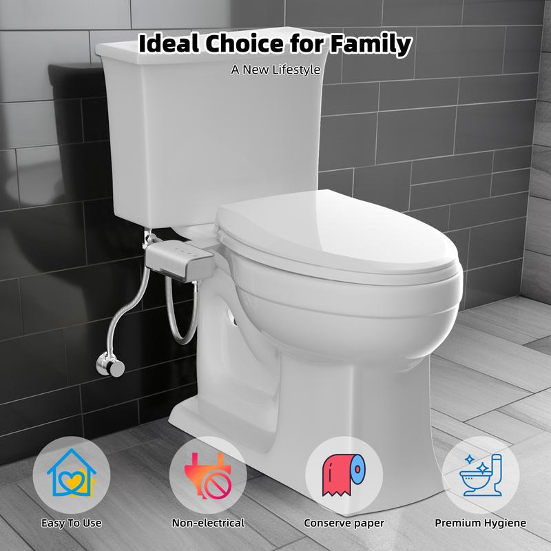 ·【Mechanical Bidet for your Toilet】With Hibbent toilet seat bidet, replace the paper rolls with this small and mechanical attachment which is portable and space friendly for your toilet. Constructed of quality ABS plastic, braided stainless steel hose for refreshing cold water and sturdy brass T-valve for durability.