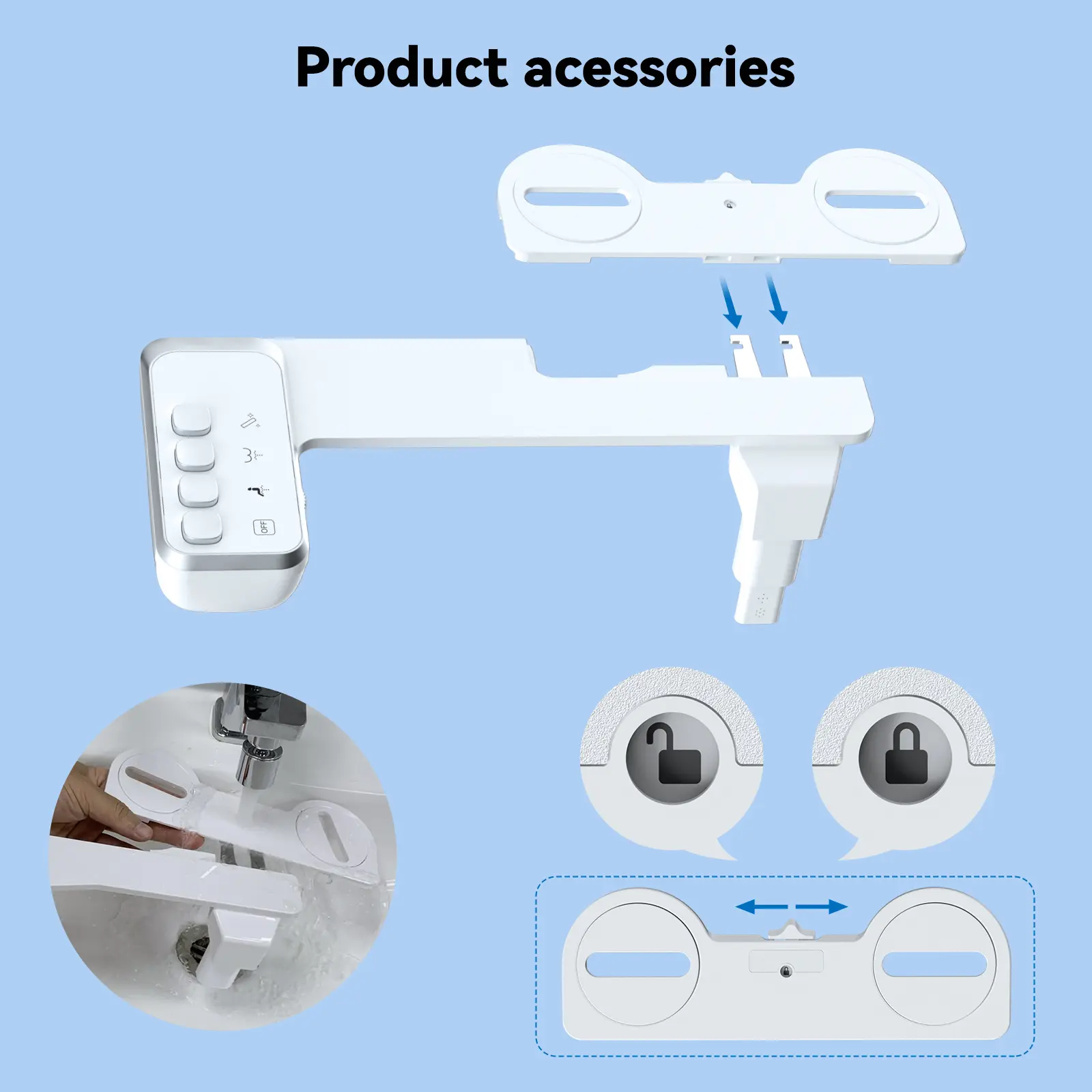 Upgraded Nozzle Protection Design: The upper part of this bidet nozzle has a downward design that makes the nozzle have a proper gap with the toilet pedestal ring. The nozzle protection design prevents the nozzle froming being broken by the toilet pedestal ring due to external force when using the toilet.