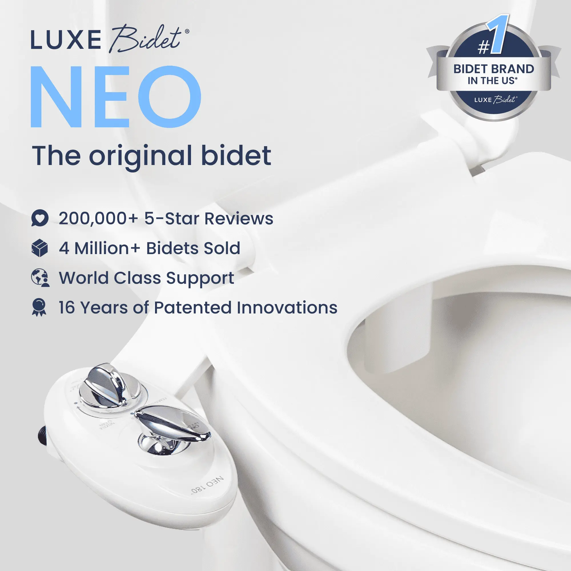Having served in the Navy in SE Asia, Okinawa and Japan in the 70s, I had seen bidets in the rare hotel I would visit. Finally thought about buying one, but I thought the cost would be quite high. Luxe NEO 180 is the right price, easy to install and very nice to use. Happy customer here.