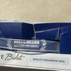 Hey folks, the box was damaged and the contents had been under enough pressure during transport that the bidet parts had scratched the plastic bag.