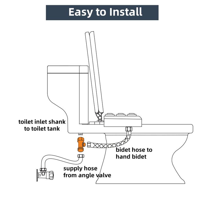 ·T Adapter Size: The bidet t adapter has a thread size of 7/8"-7/8"-3/8" (also known as 15/16"-15/16"-9/16" thread). The female 7/8" thread connects to the toilet tank, the male 7/8" thread connects to the water supply hose, and the male 3/8" thread connects to the bidet attachment.