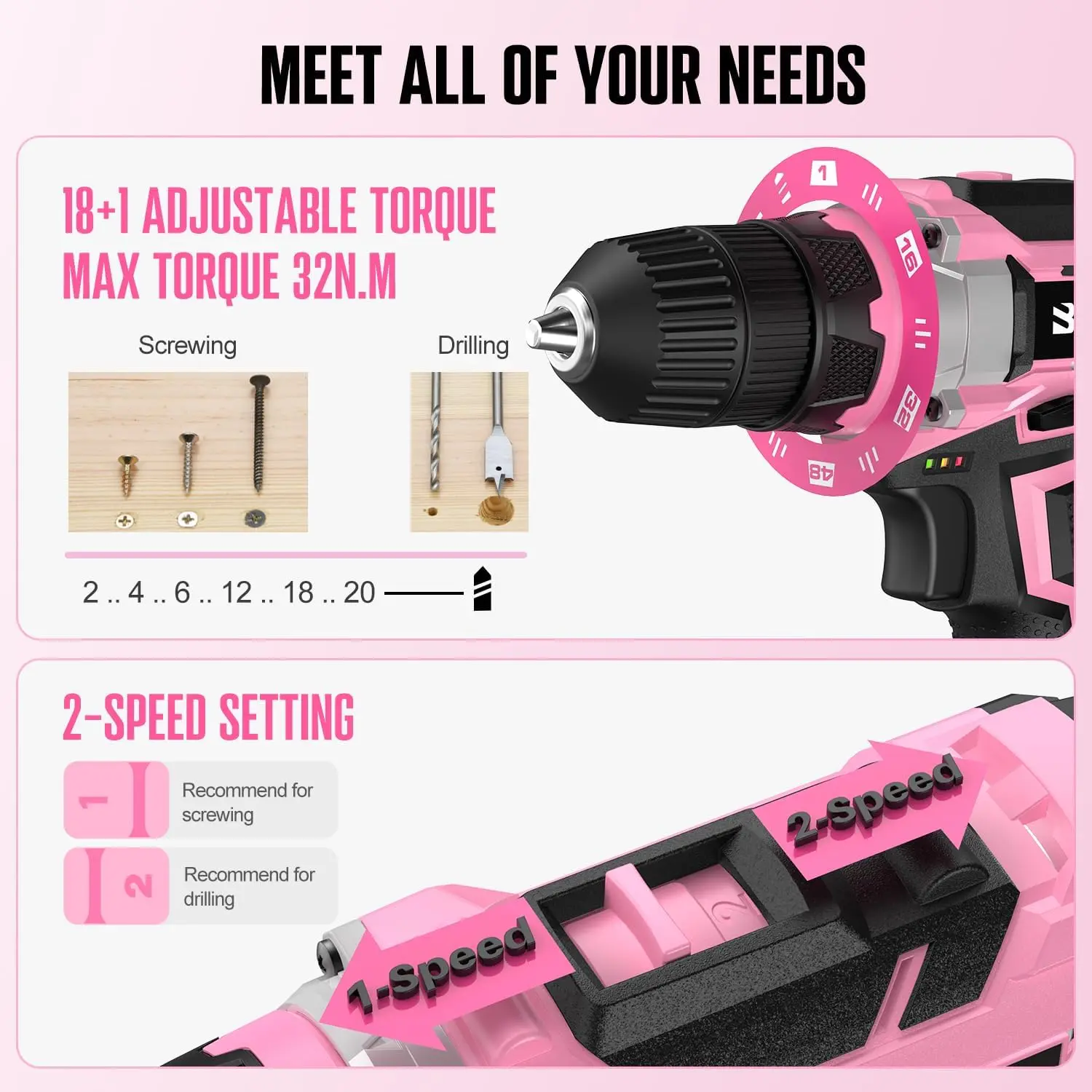 ·20V Cordless Drill - 20V; 1500mAh; 2 Speeds: 0-350Rpm/0-1500Rpm; 64+1 Torque Settings; Maximum Torque 32N.m; Weight Only 2.6 lbs; LED Light