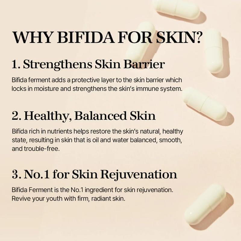 ·Bifida Ferment Essence is enriched with 100% Bifida Ferment Extracts, which aids skin rejuvenation and fortifies damaged skin barriers.