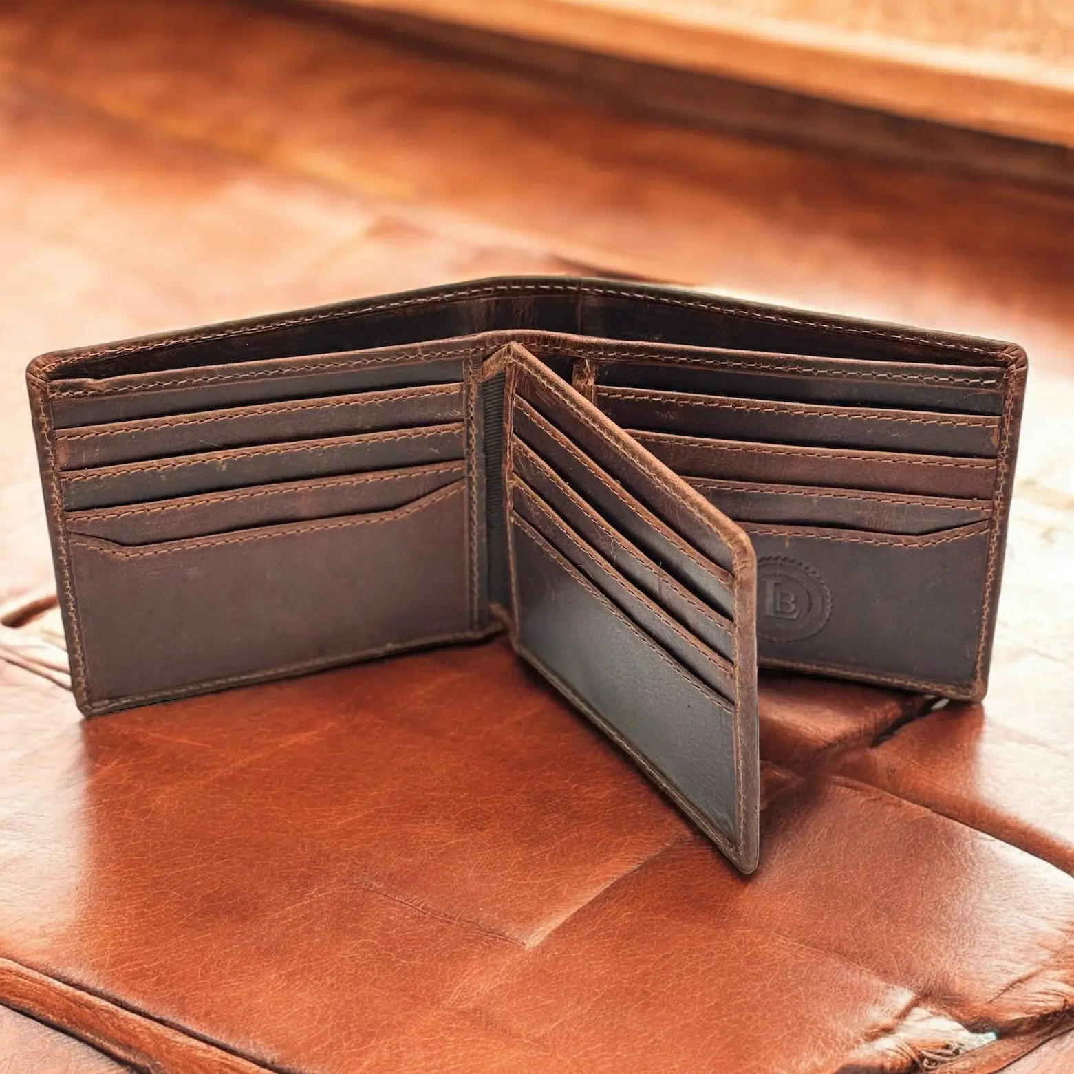 ·Design: Multiple credit card slots, ID window, side pockets, and bill compartments.
